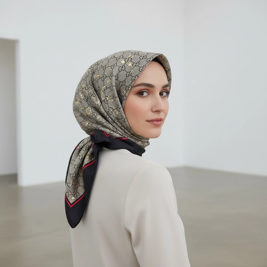 A Kalite Twill İpek Eşarp - Çiçek Desen