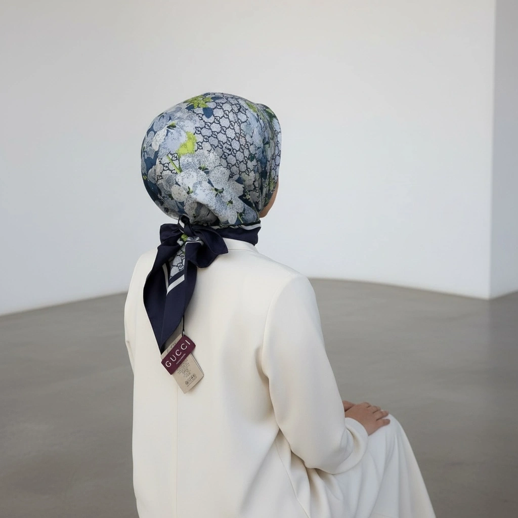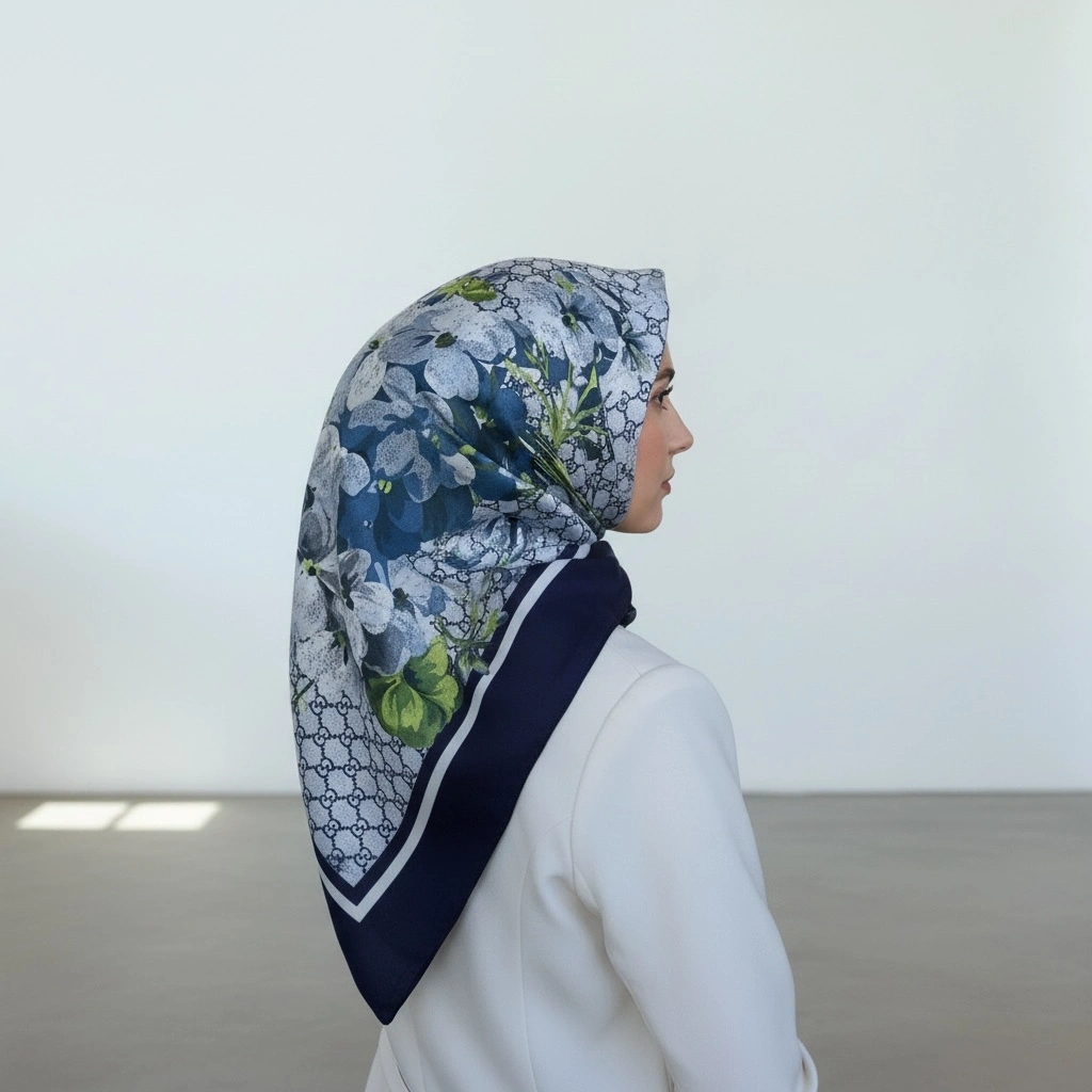 A Kalite Twill İpek Eşarp - Çiçek Desen