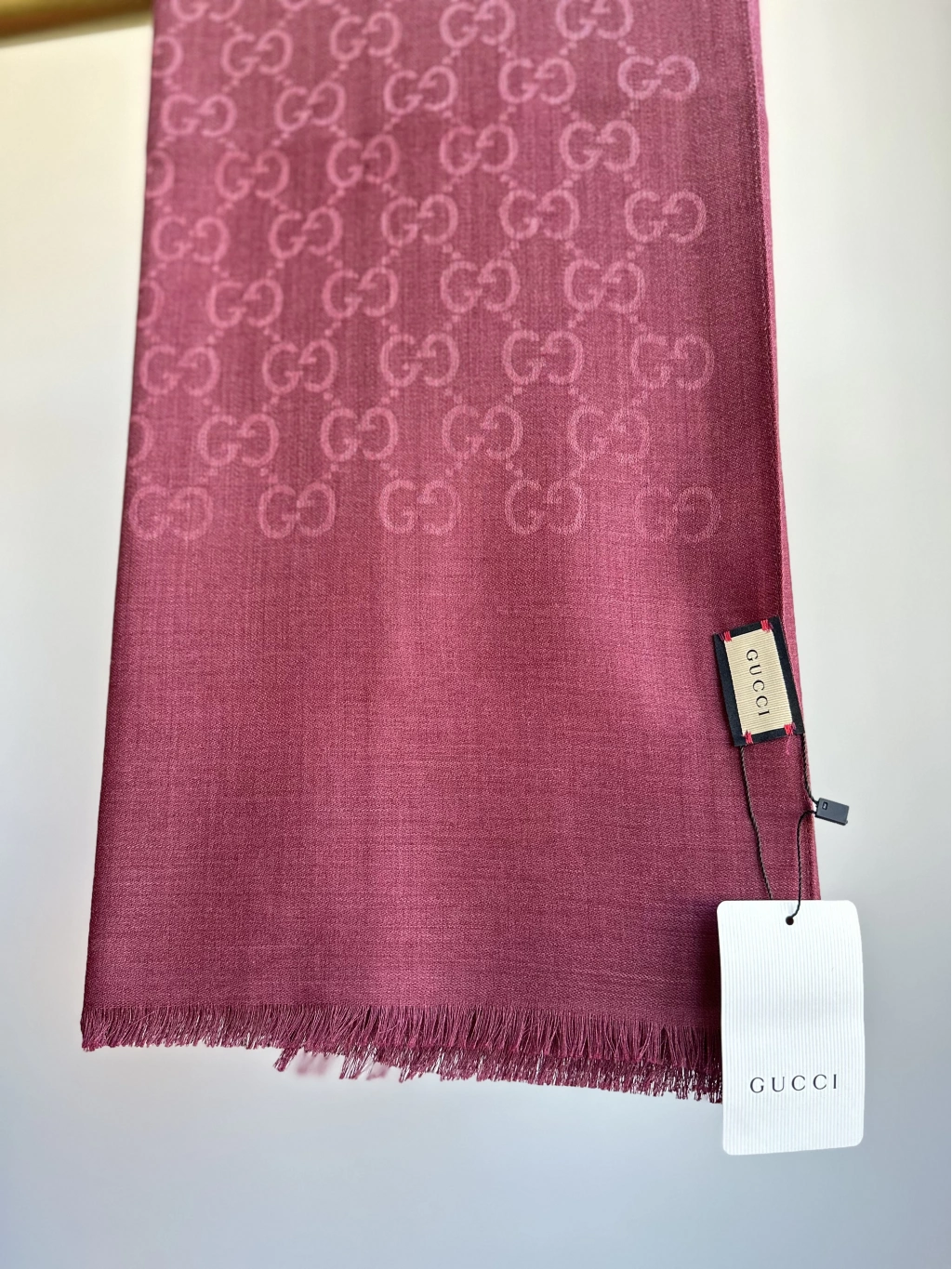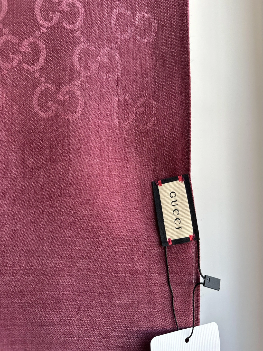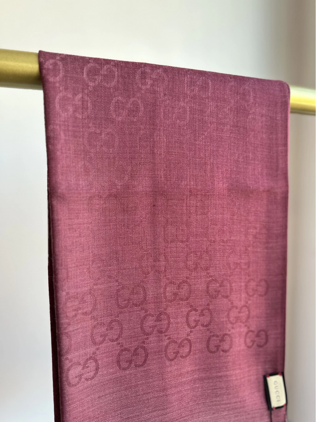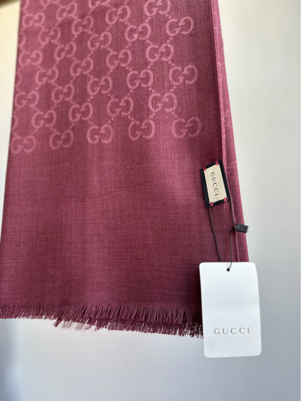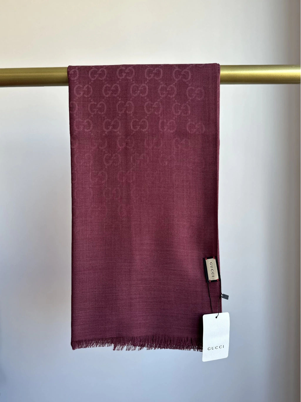 Zamansız şıklığın simgesi olan bu Gucci bordo şal, yumuşak dokusu ve zarif monogram deseniyle her stile sofistike bir dokunuş katıyor. İnce işçiliği ve ikonik GG logosu, markanın klasik estetiğini modern bir yorumla buluşturuyor.