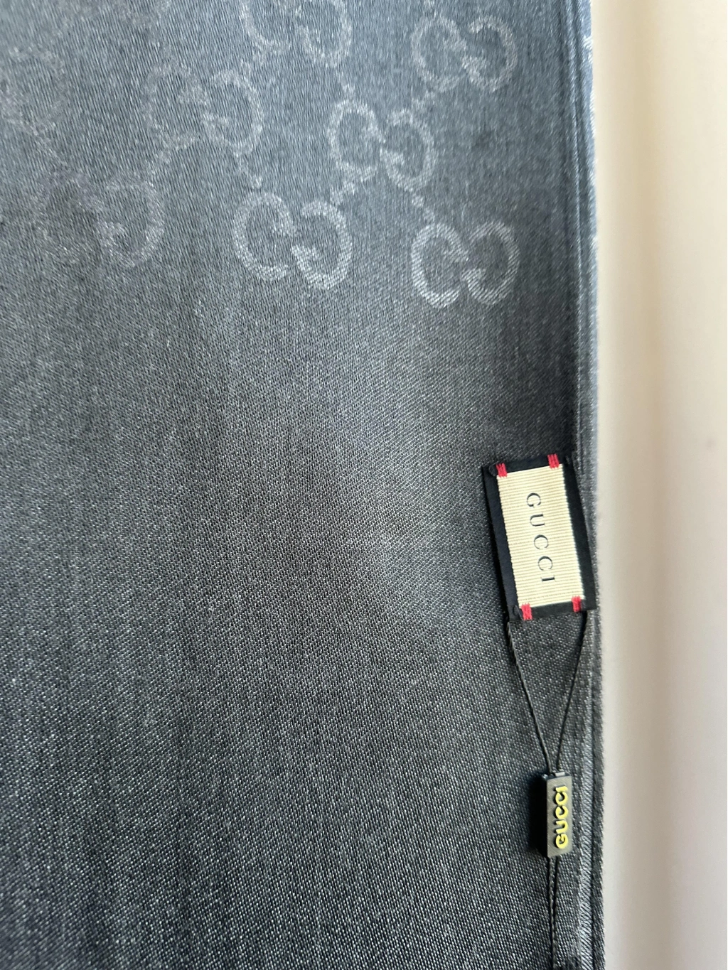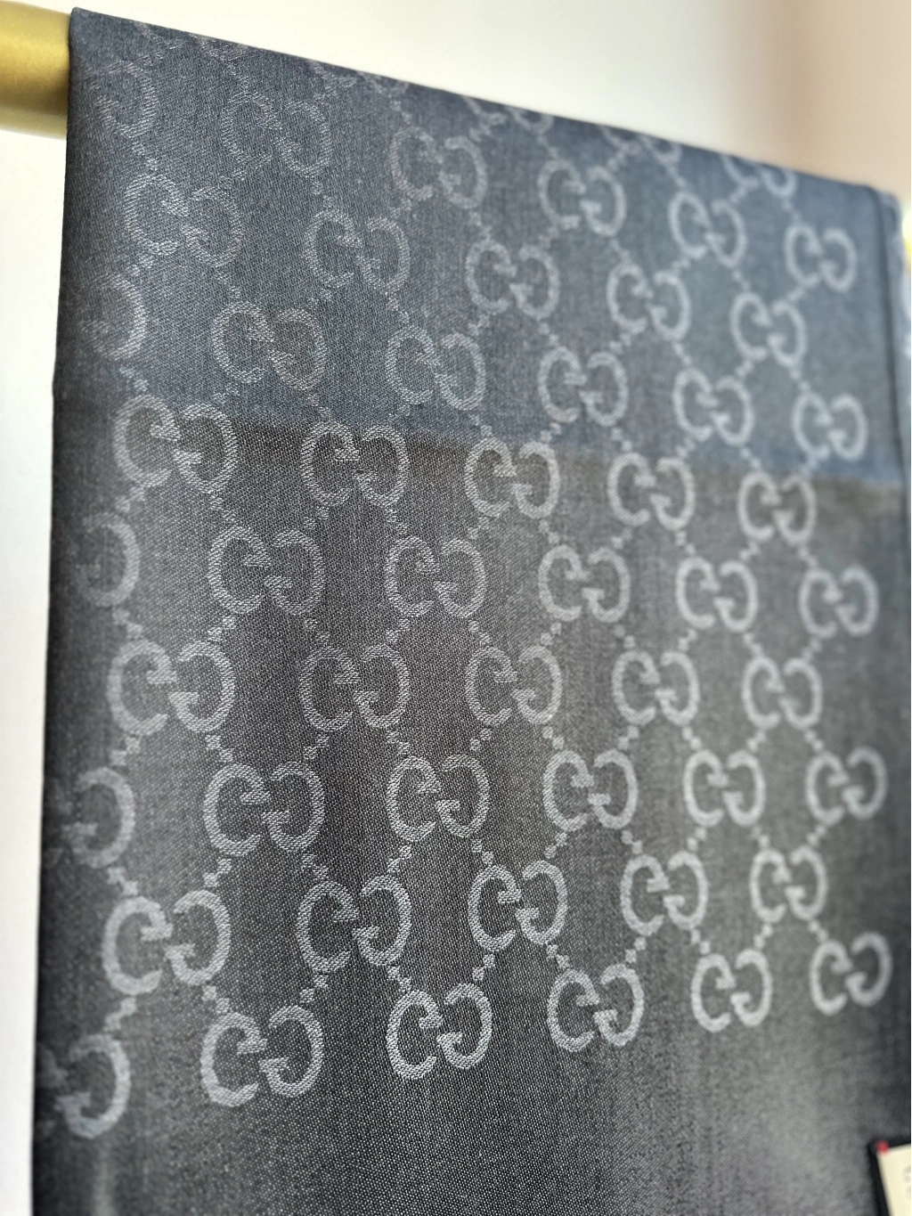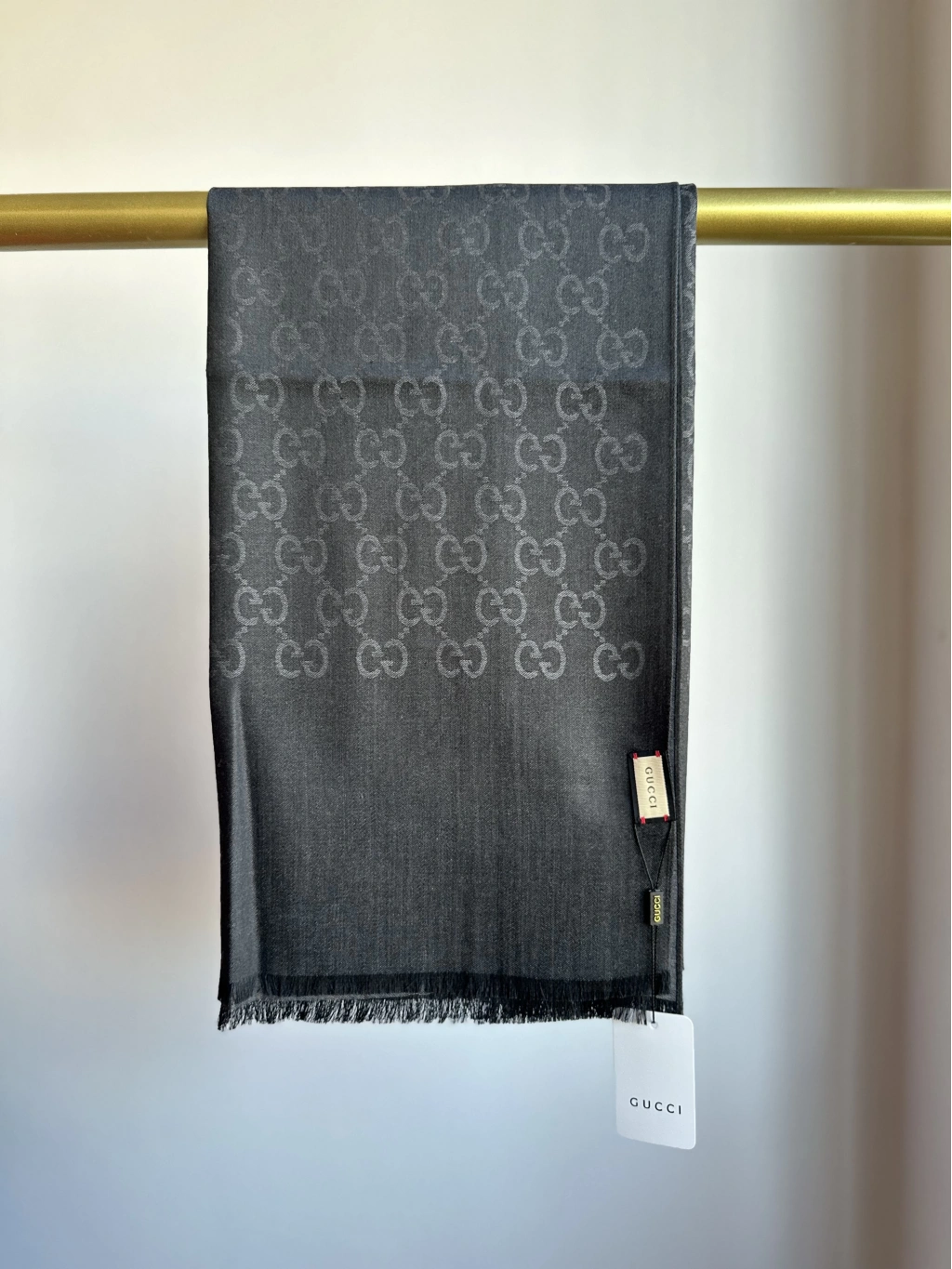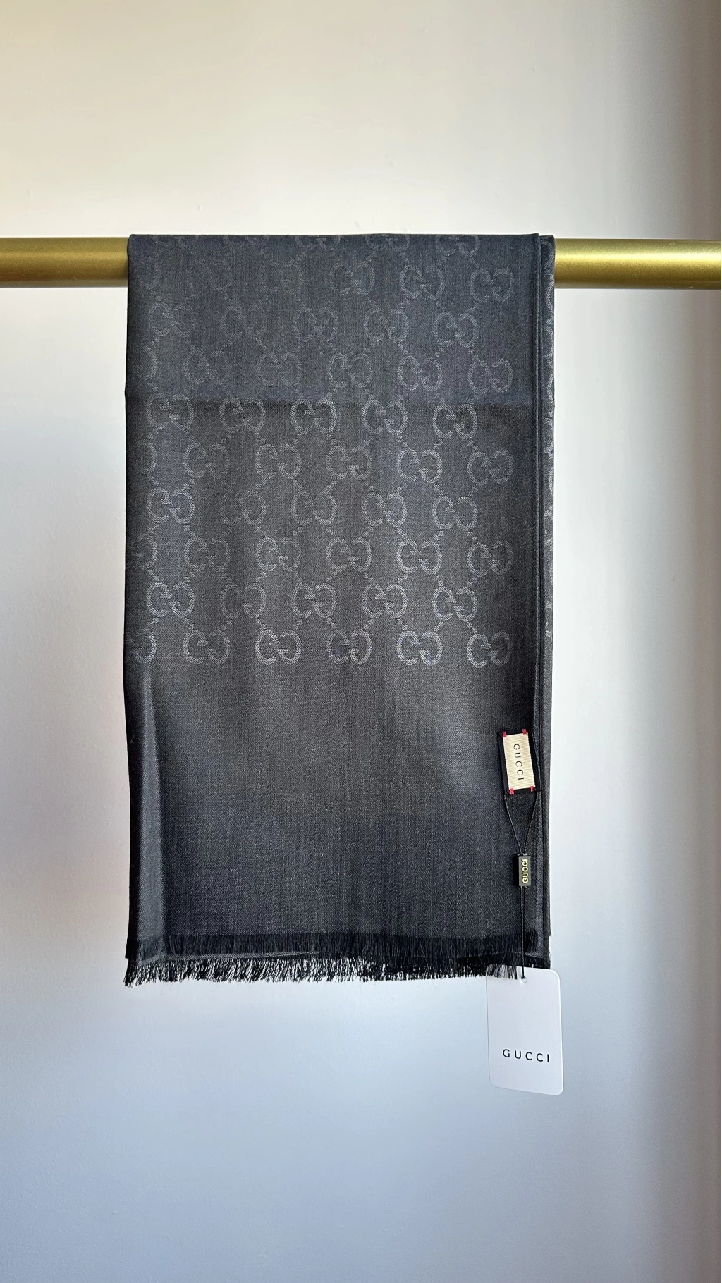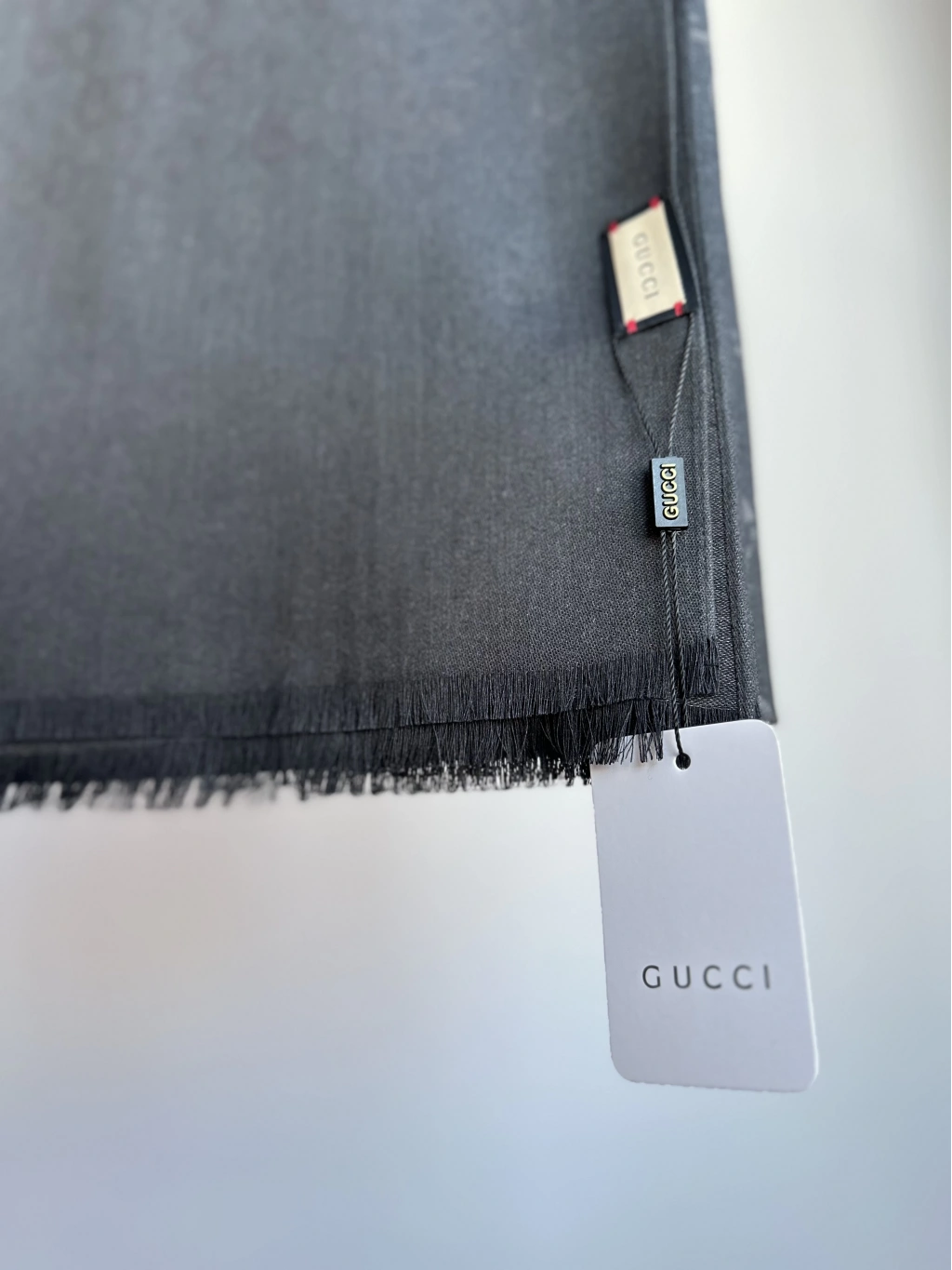 Zamansız şıklığın simgesi olan bu Gucci siyah şal, yumuşak dokusu ve zarif monogram deseniyle her stile sofistike bir dokunuş katıyor. İnce işçiliği ve ikonik GG logosu, markanın klasik estetiğini modern bir yorumla buluşturuyor.