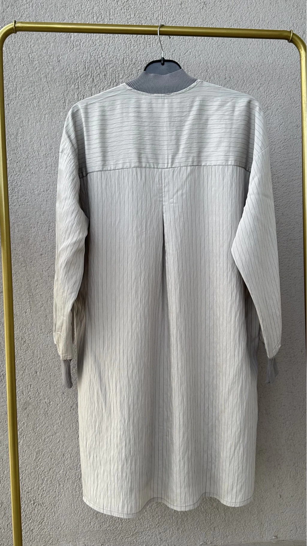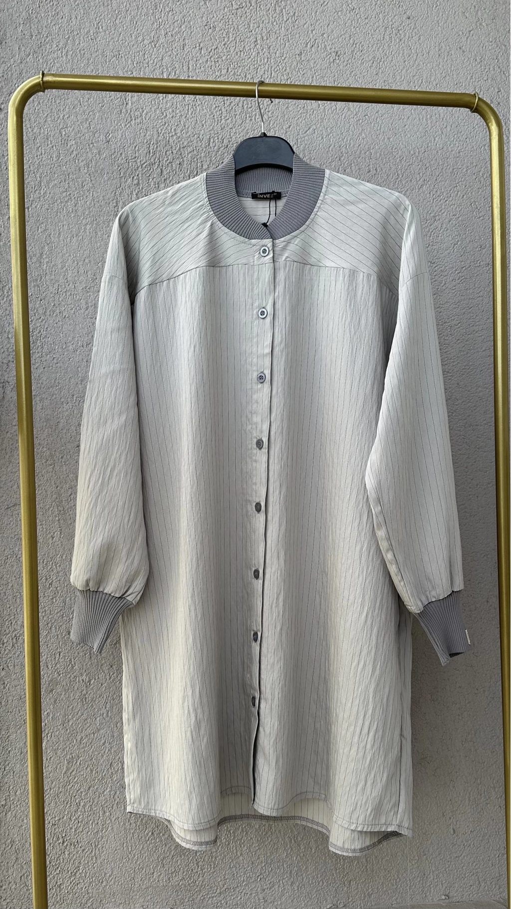 Zamansız şıklığın en sade haliyle buluştuğu bu çizgili oversize uzun gömlek, modern kesimi ve sade detaylarıyla her stile kolayca uyum sağlar. Düz formu, dökümlü duruşu ve ribana yaka detayı sayesinde klasik gömlek formuna sportif bir dokunuş kazandırır.