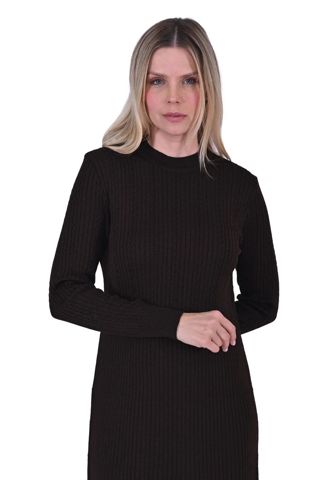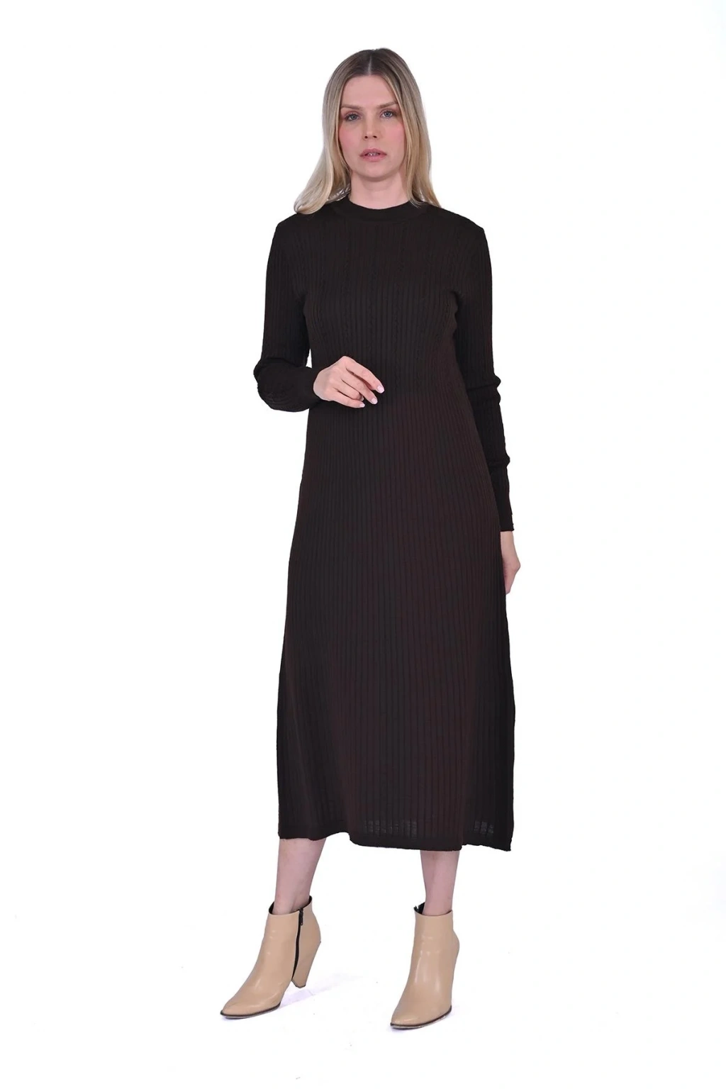 İnvee 6954 Yün Karışımlı Triko Elbise - Kahve