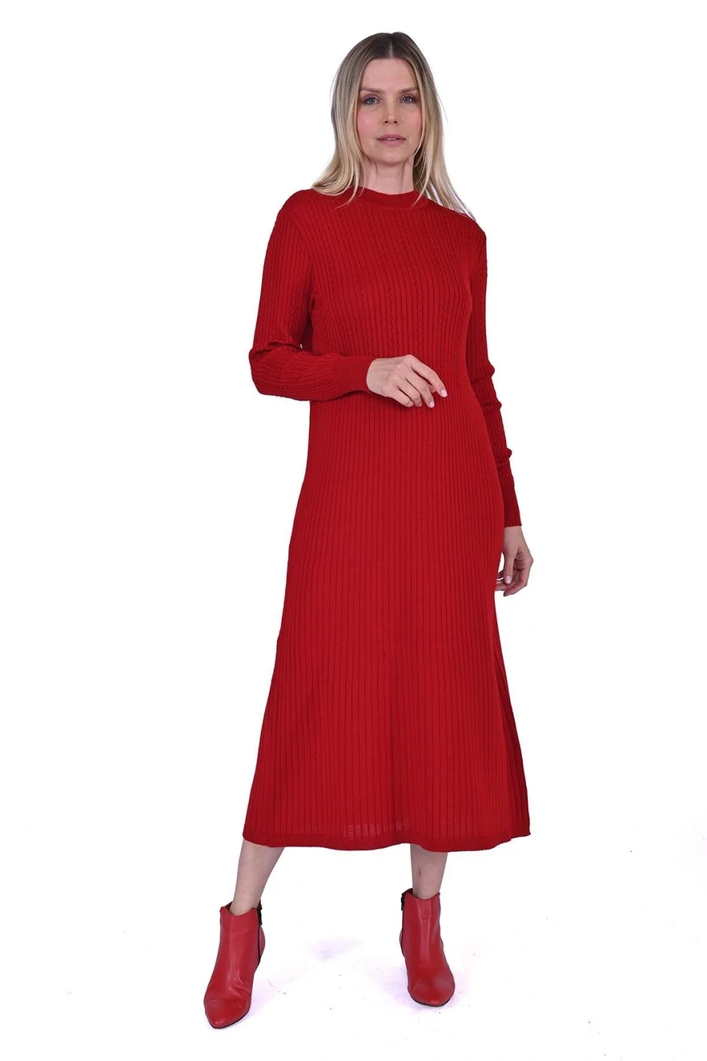İnvee 6954 Yün Karışımlı Triko Elbise - Kırmızı
