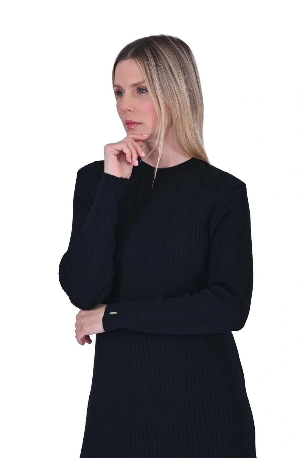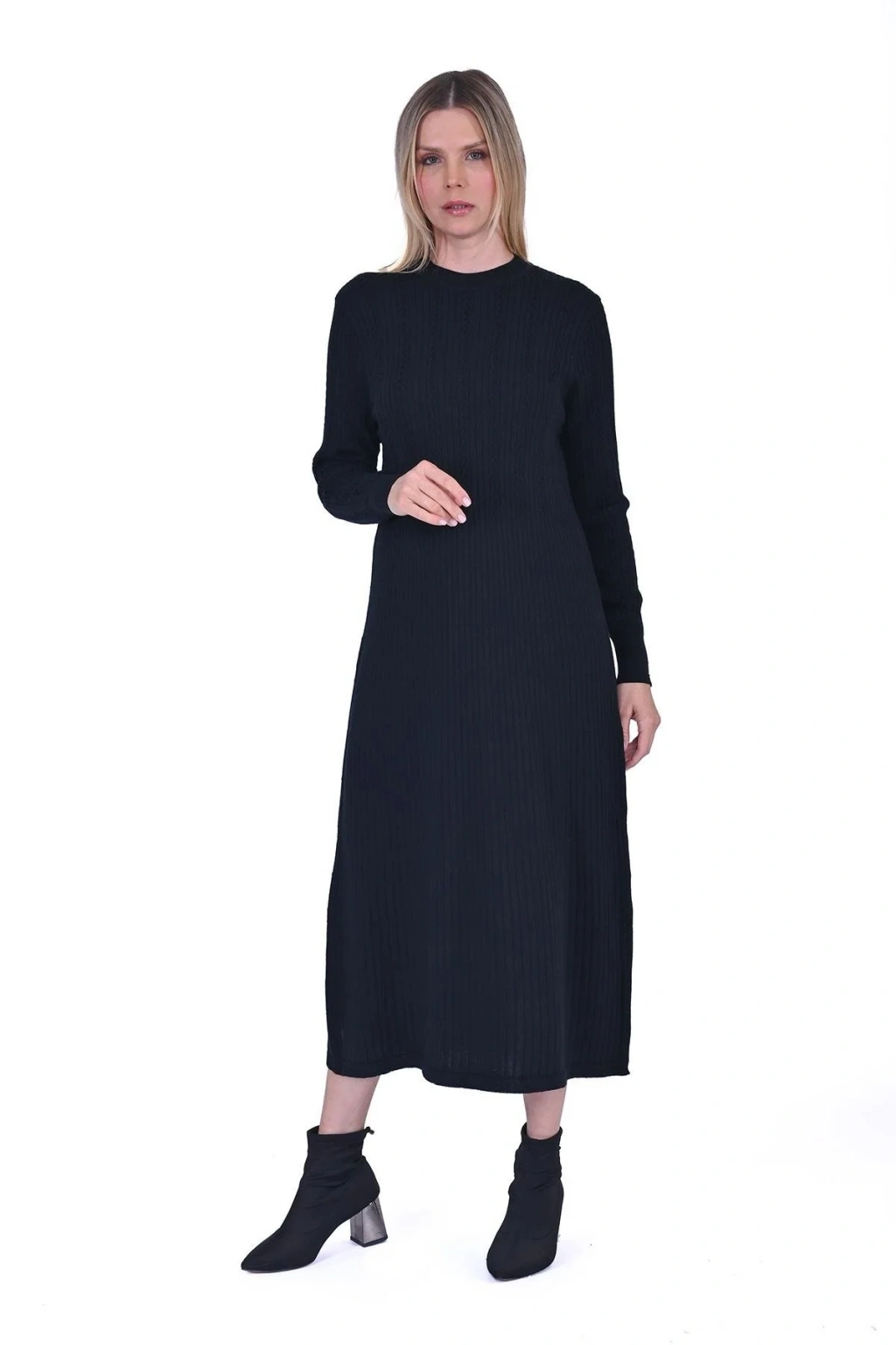İnvee 6954 Yün Karışımlı Triko Elbise - Siyah
