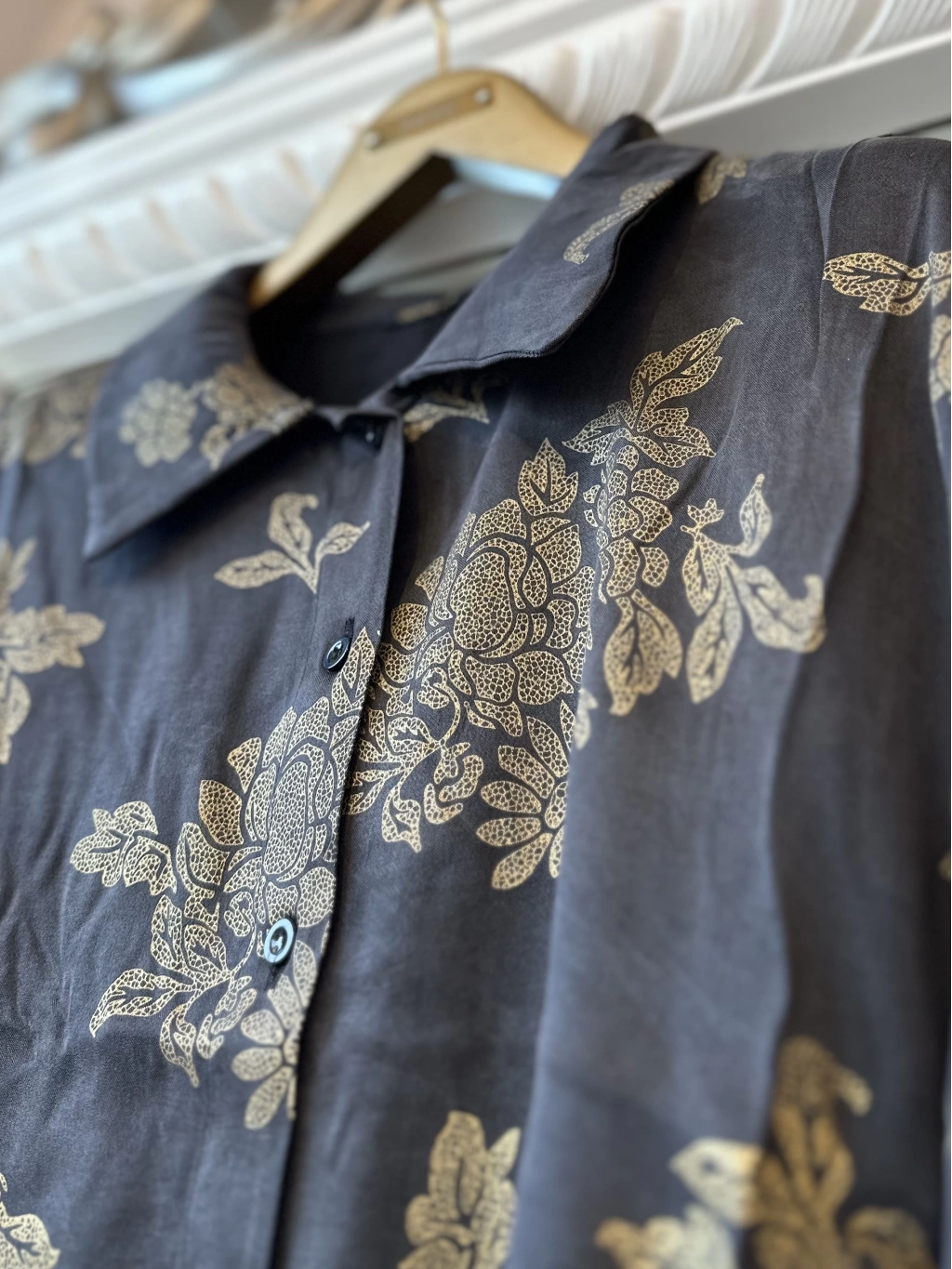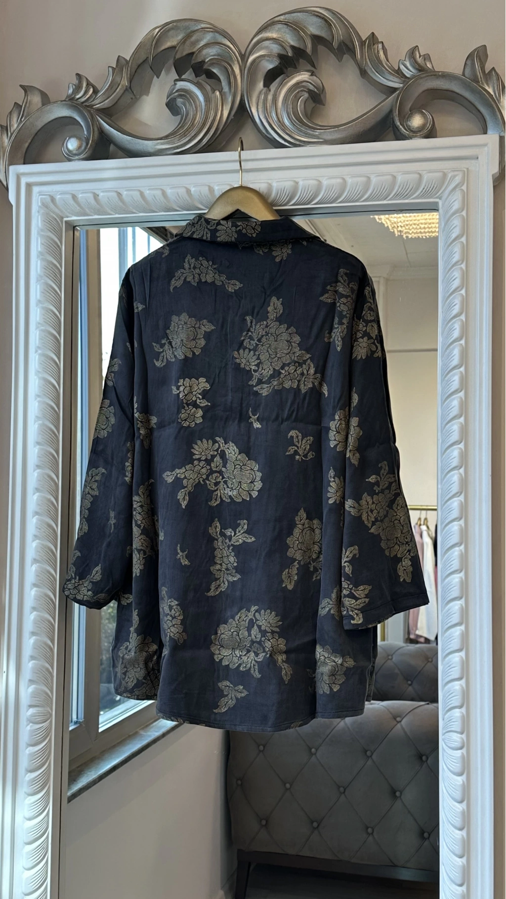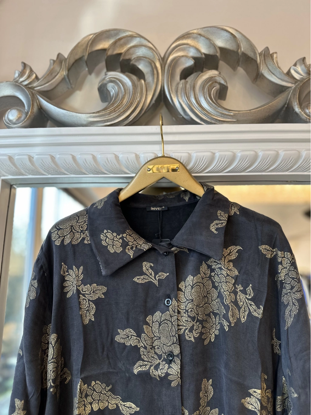 Zarif detayları ve sofistike duruşuyla öne çıkan bu altın desenli Modal gömlek, şıklığı ve konforu bir araya getiriyor. Hafif parlak dokusu ve çiçek işlemeli deseniyle klasik bir görünümü modern bir yorumla sunar.