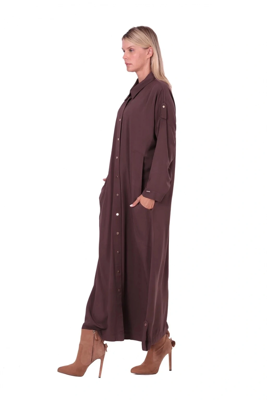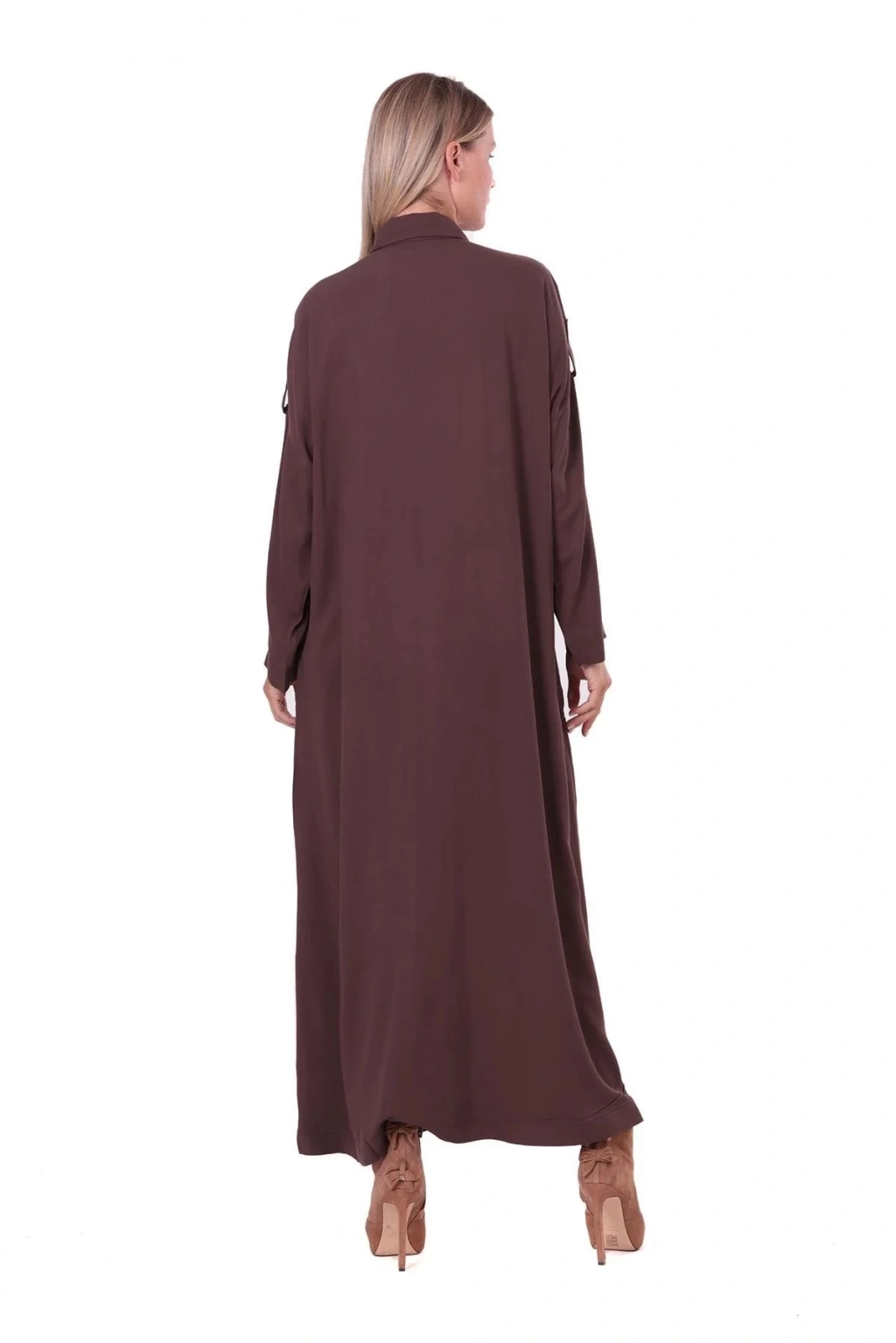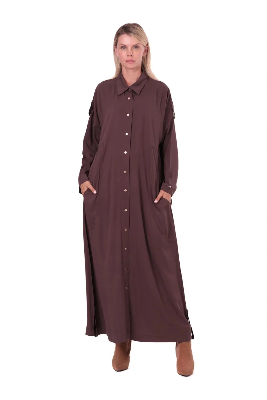 İnvee Apoletli Uzun Kap - Kahverengi