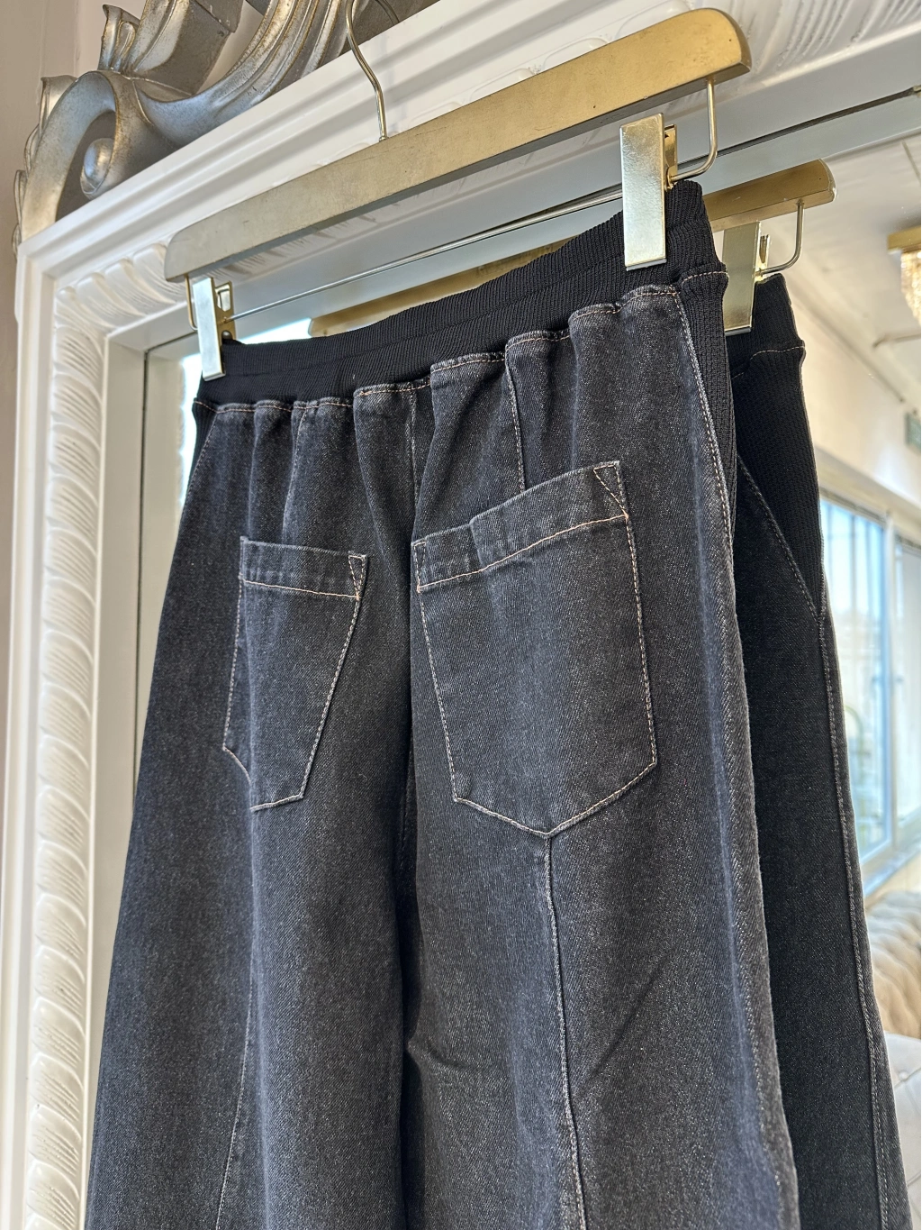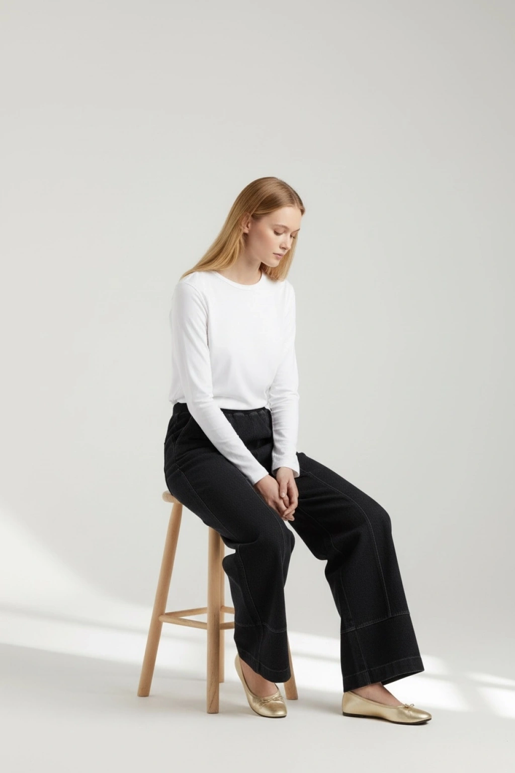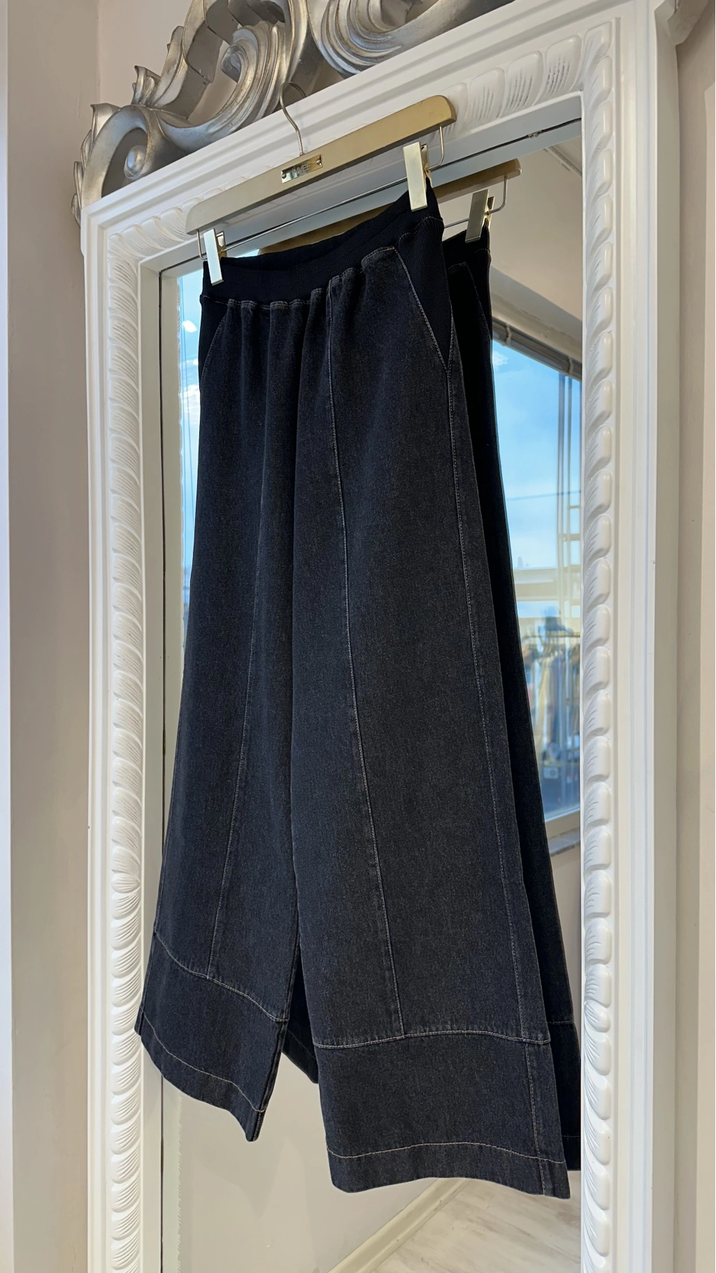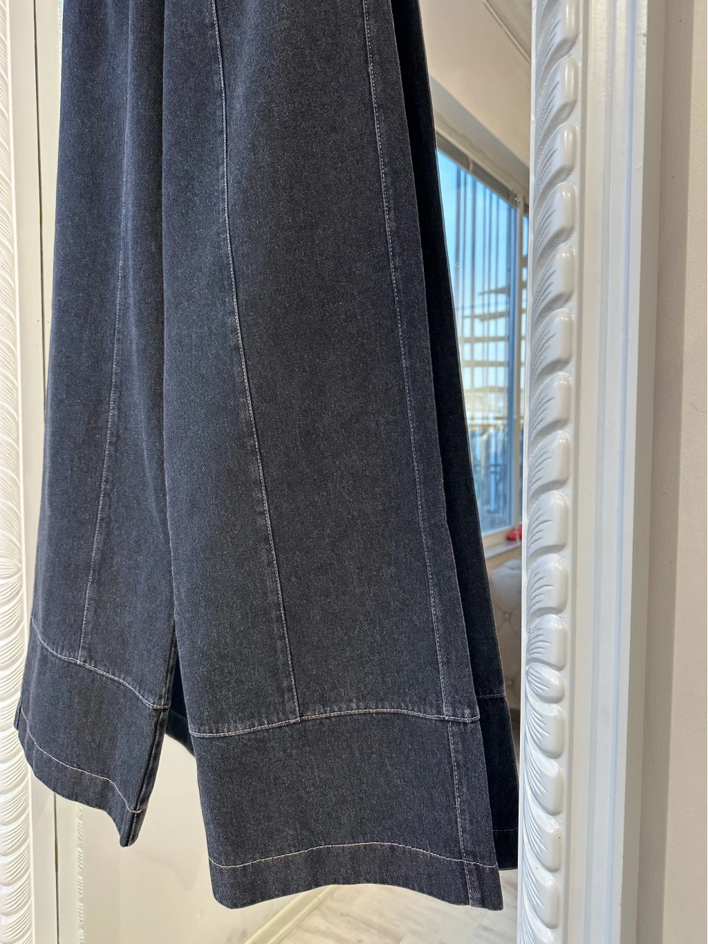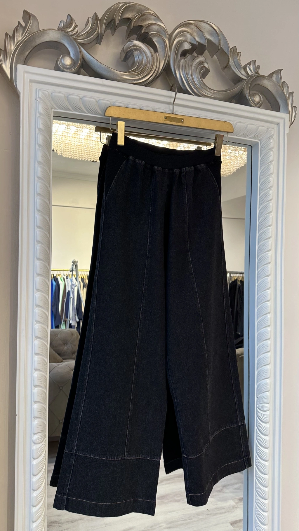 Günlük kombinlerde maksimum rahatlık sunan denim bol paça kadın pantolon.