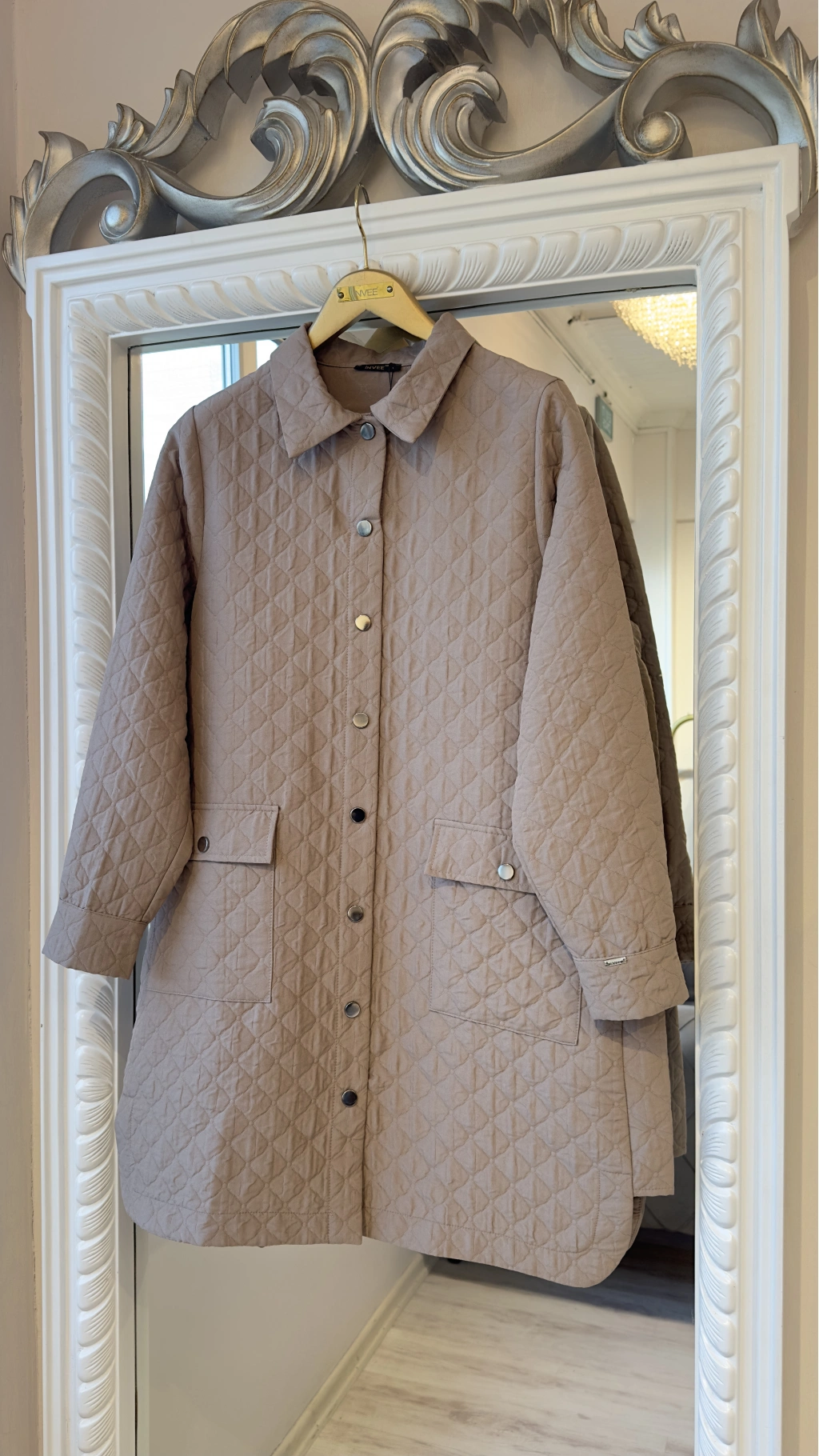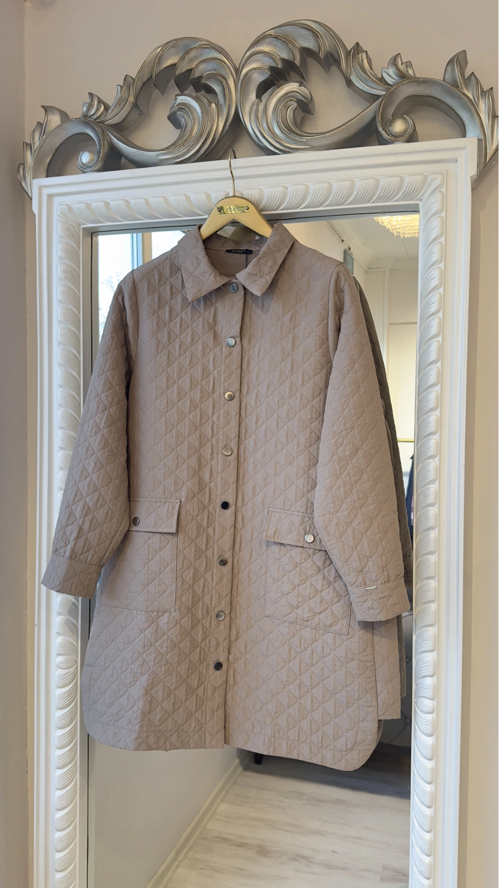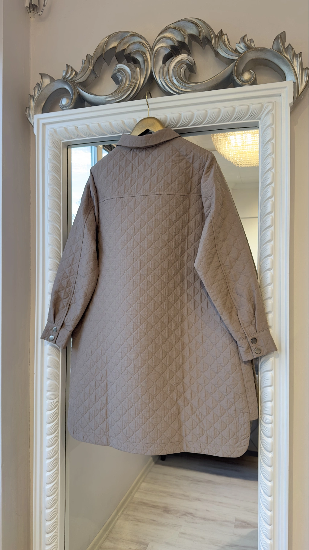 Modern tasarımı ve zamansız duruşuyla öne çıkan bej kapitone düğmeli uzun ceket, mevsim geçişlerinde ve serin havalarda şıklığından ödün vermek istemeyen kadınlar için tasarlanmıştır. Minimal çizgileri ve sade rengi sayesinde hem günlük kombinlerde hem de ofis stilinde rahatlıkla kullanılabilir.