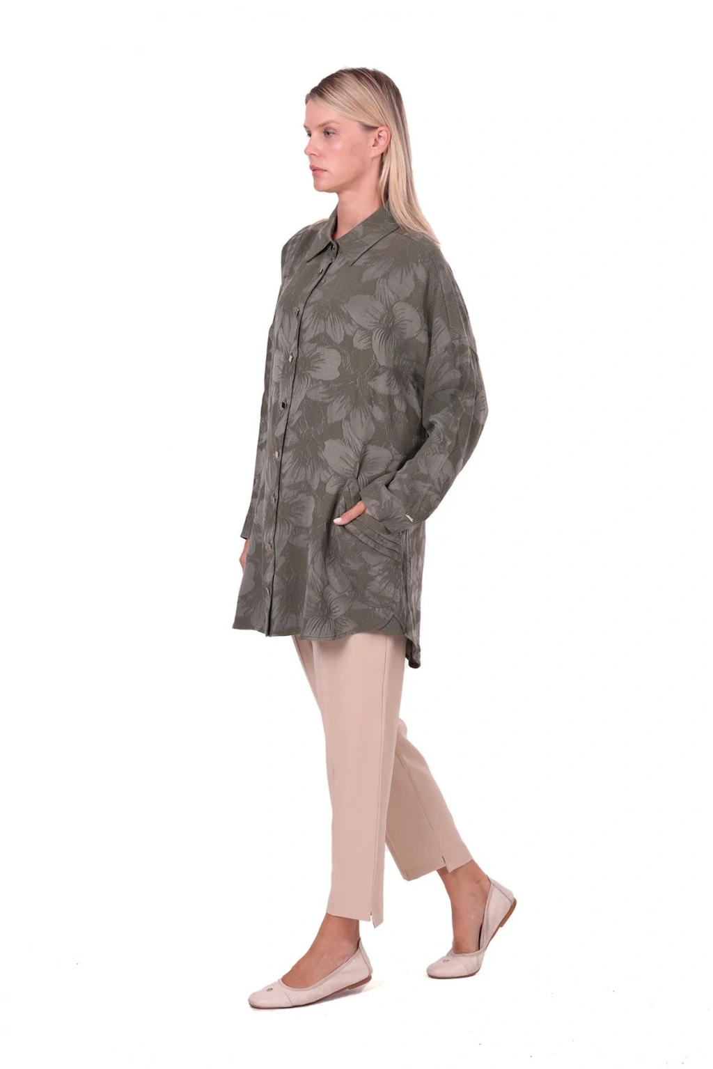 İnvee Çiçek Desenli Lyocell Gömlek - Haki