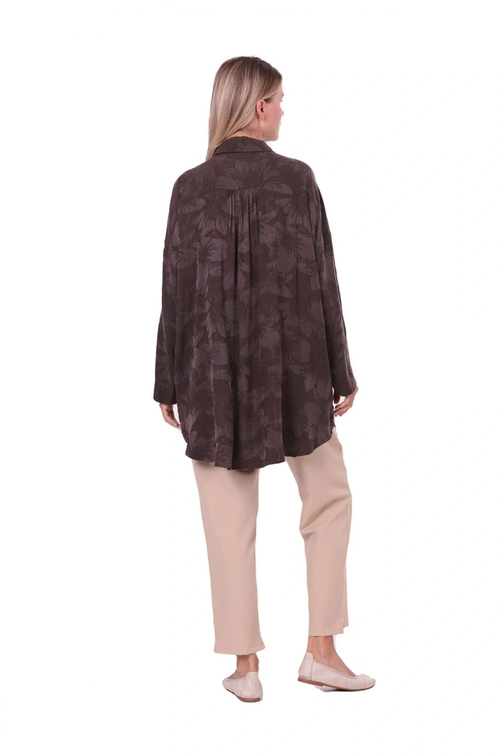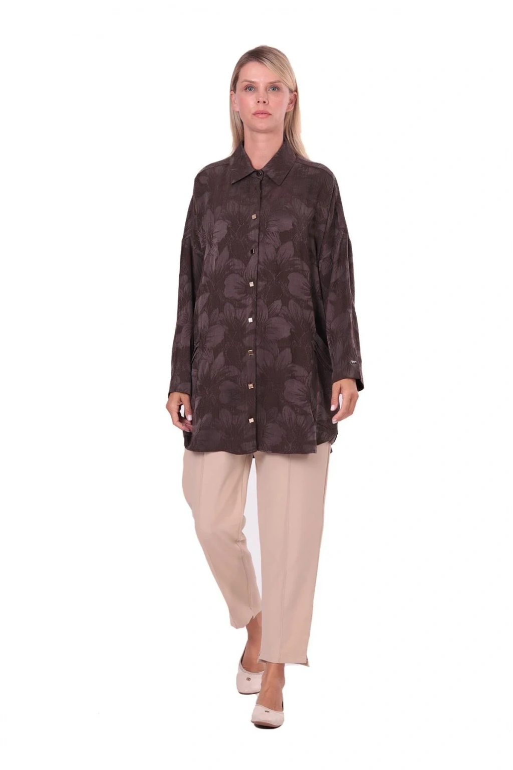 İnvee Çiçek Desenli Lyocell Gömlek - Kahverengi