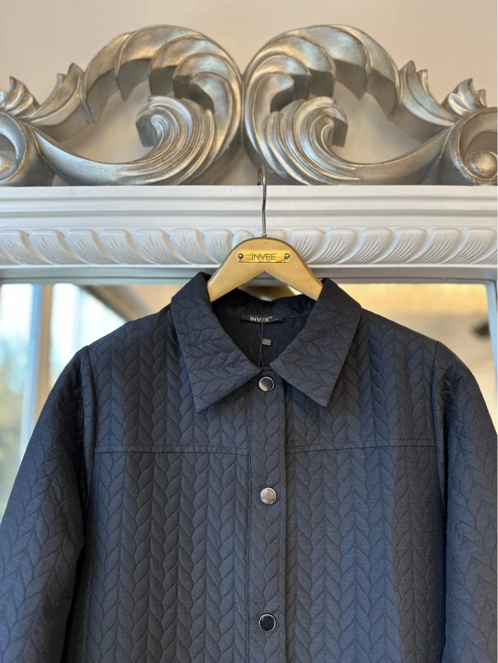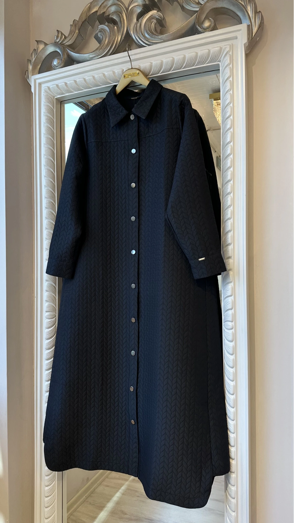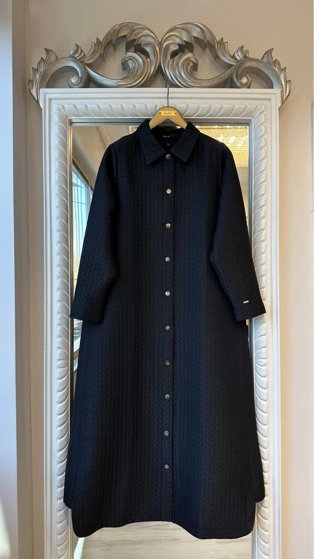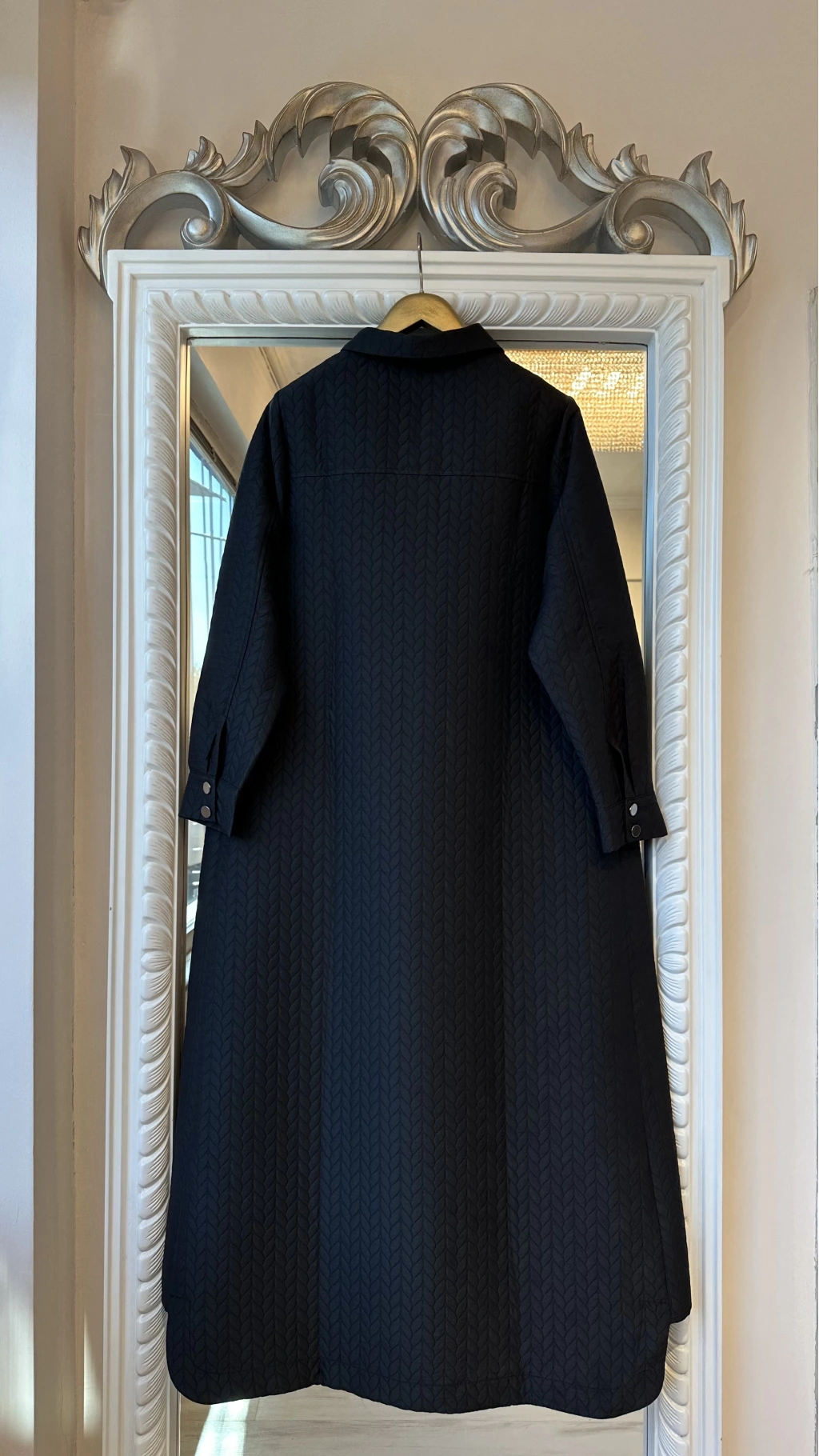 İnvee Çıtçıt Kapamalı Desenli Kapitone Pardesü - Siyah