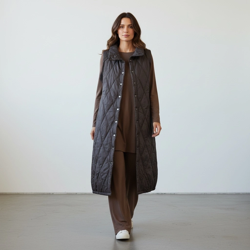 Şıklık ve konforu bir arada sunan INVEЕ Kapitone Uzun Yelek, modern şehir stilinin vazgeçilmez parçası olmaya aday. Minimalist tasarımı, zarif dikiş detayları ve yüksek kaliteli kumaşıyla hem günlük hem de sportif kombinlerde kolaylıkla kullanılabilir.