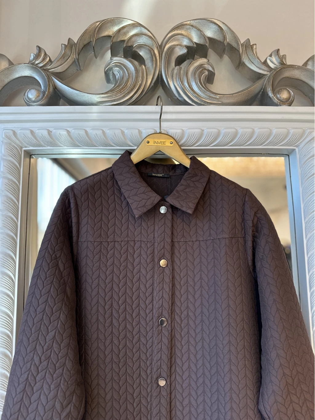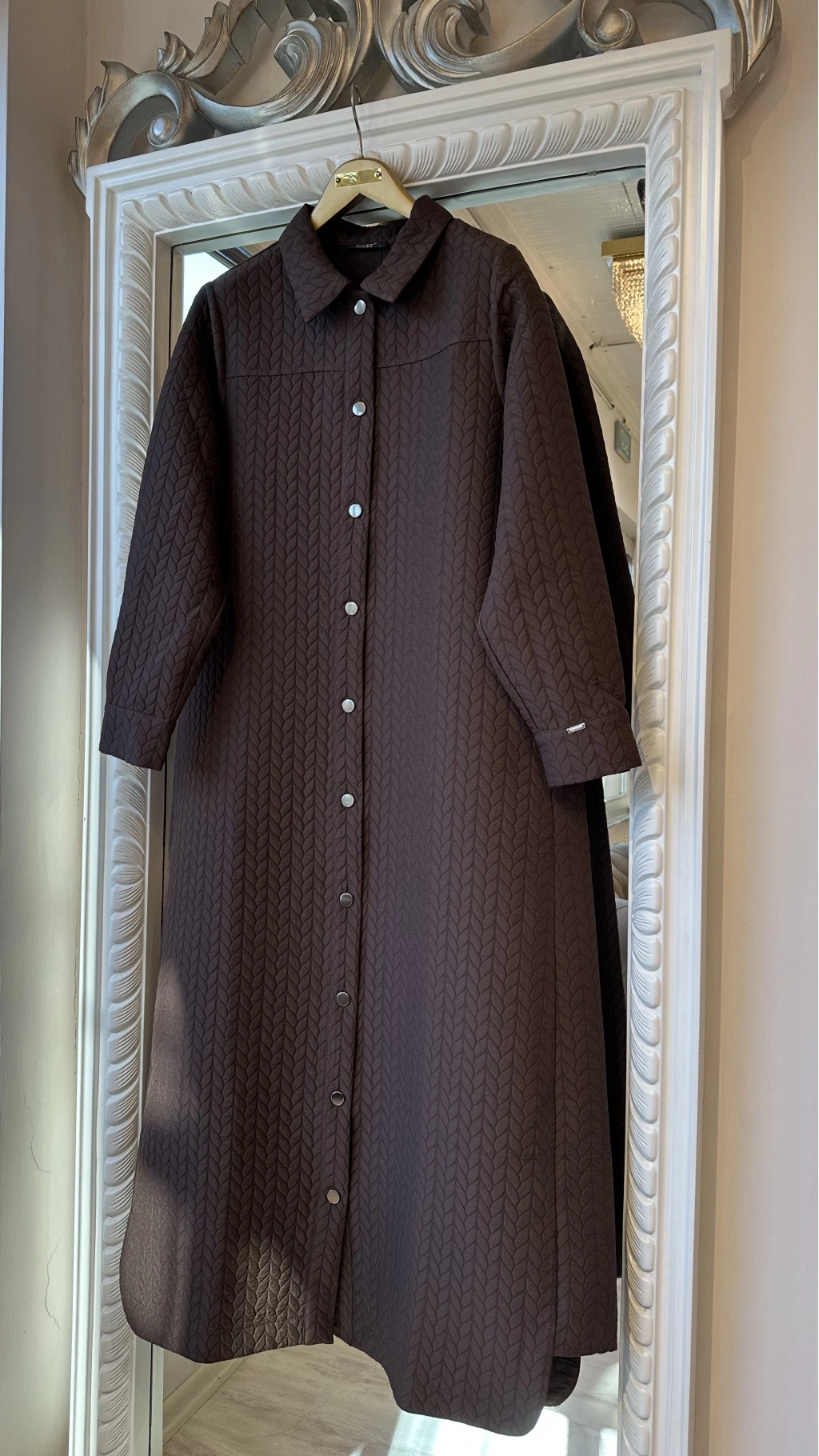 İnvee Desenli Çıtçıt Kapamalı Kapitone Kap - Kahverengi