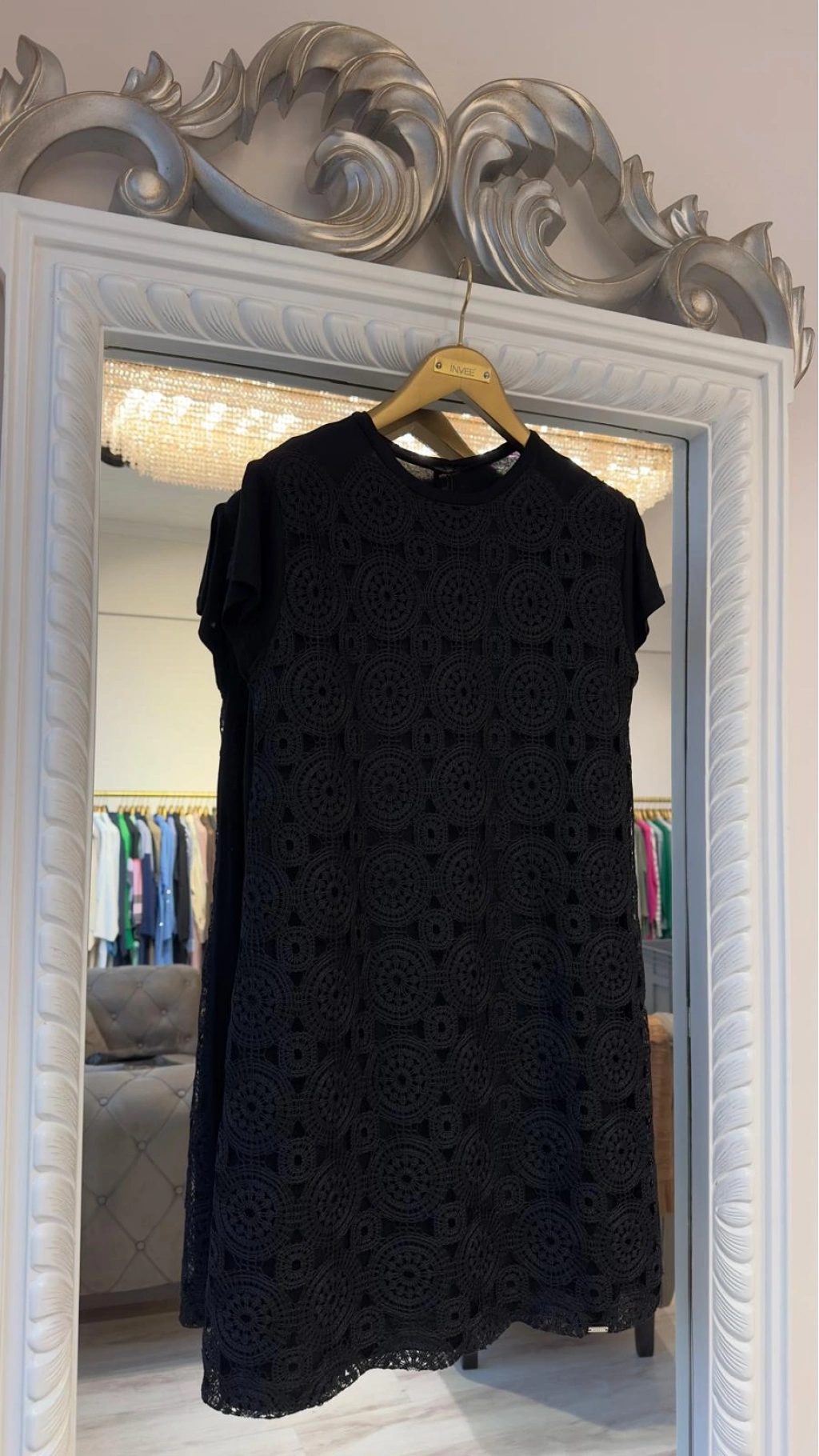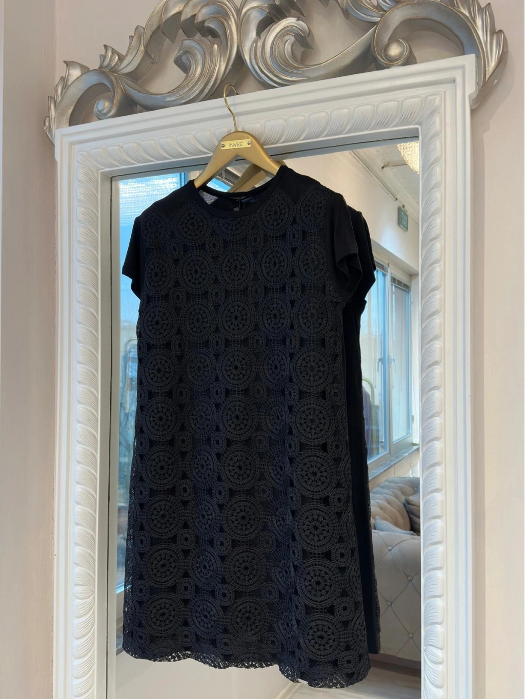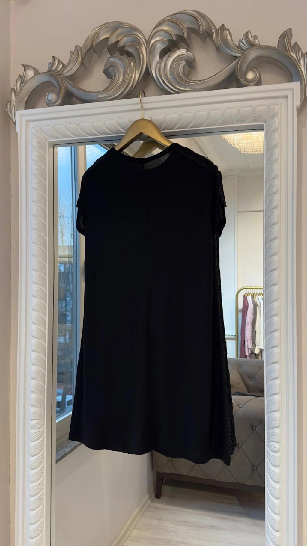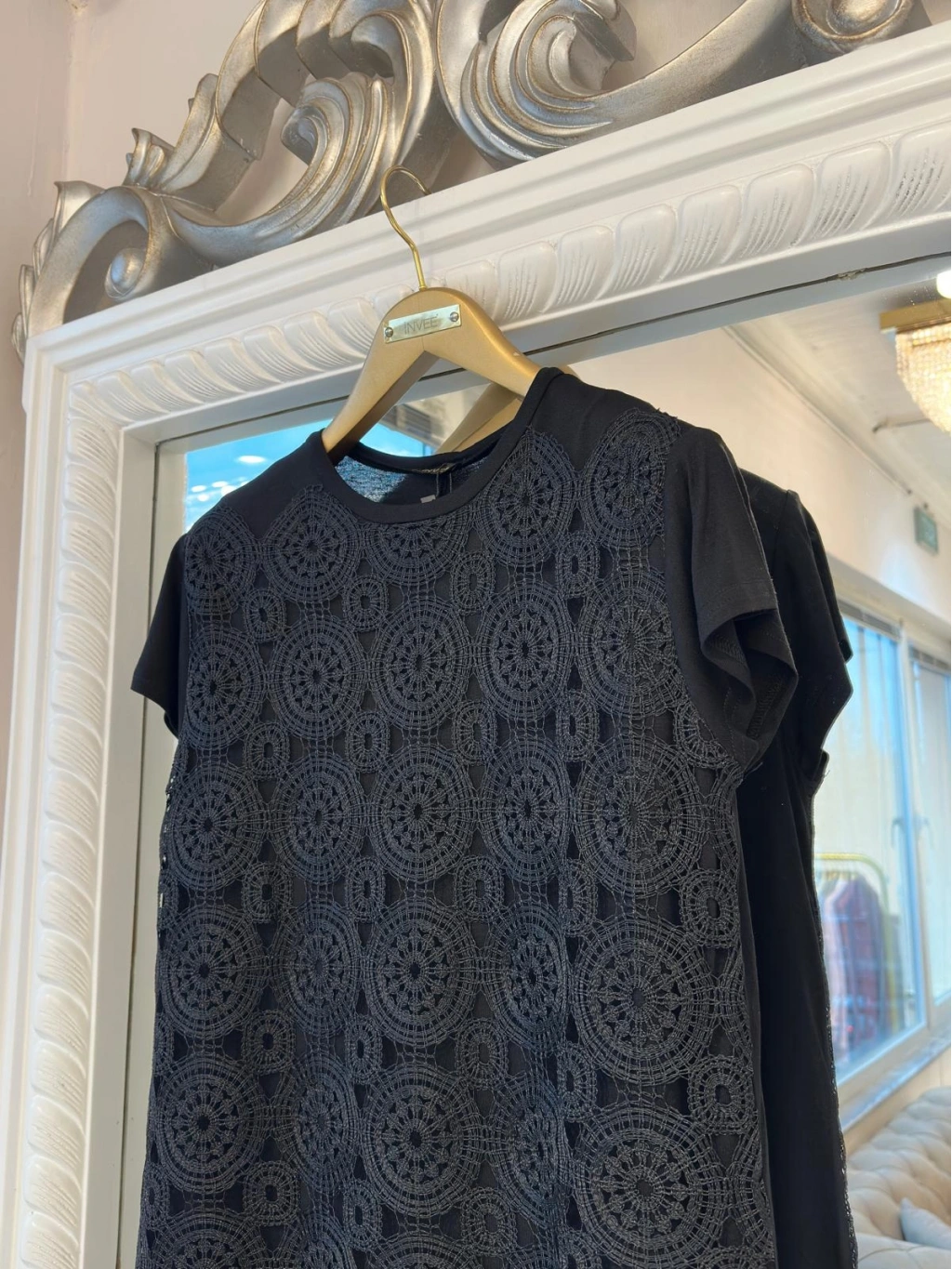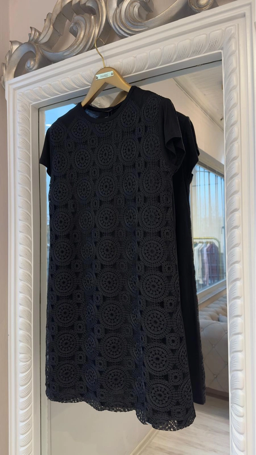 Zarif dantel yüzeyi ve sade kesimiyle öne çıkan bu tunik, hem günlük hem de özel kombinleriniz için şık bir alternatiftir. Ön yüzündeki dairesel desenli dantel dokusu ürüne sofistike bir görünüm kazandırırken, iç astarlı yapısı sayesinde rahat ve güvenli kullanım sunar.