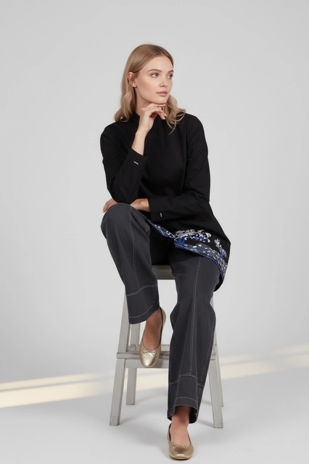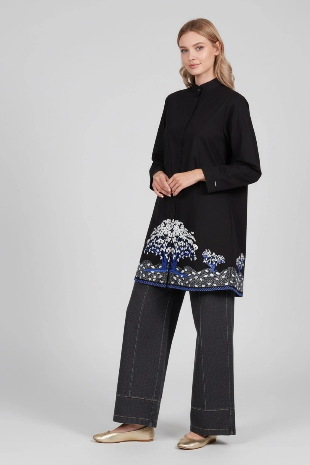 Modern çizgileri ve işlemeli tasarımıyla bu kadın tunik, gardırobunuzun şık ve kullanışlı parçalarından biri olmaya aday.
