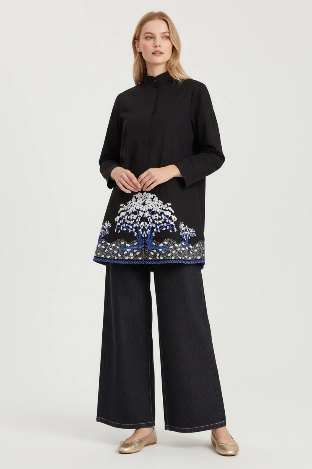 Nakış Detaylı Uzun Tunik Gömlek