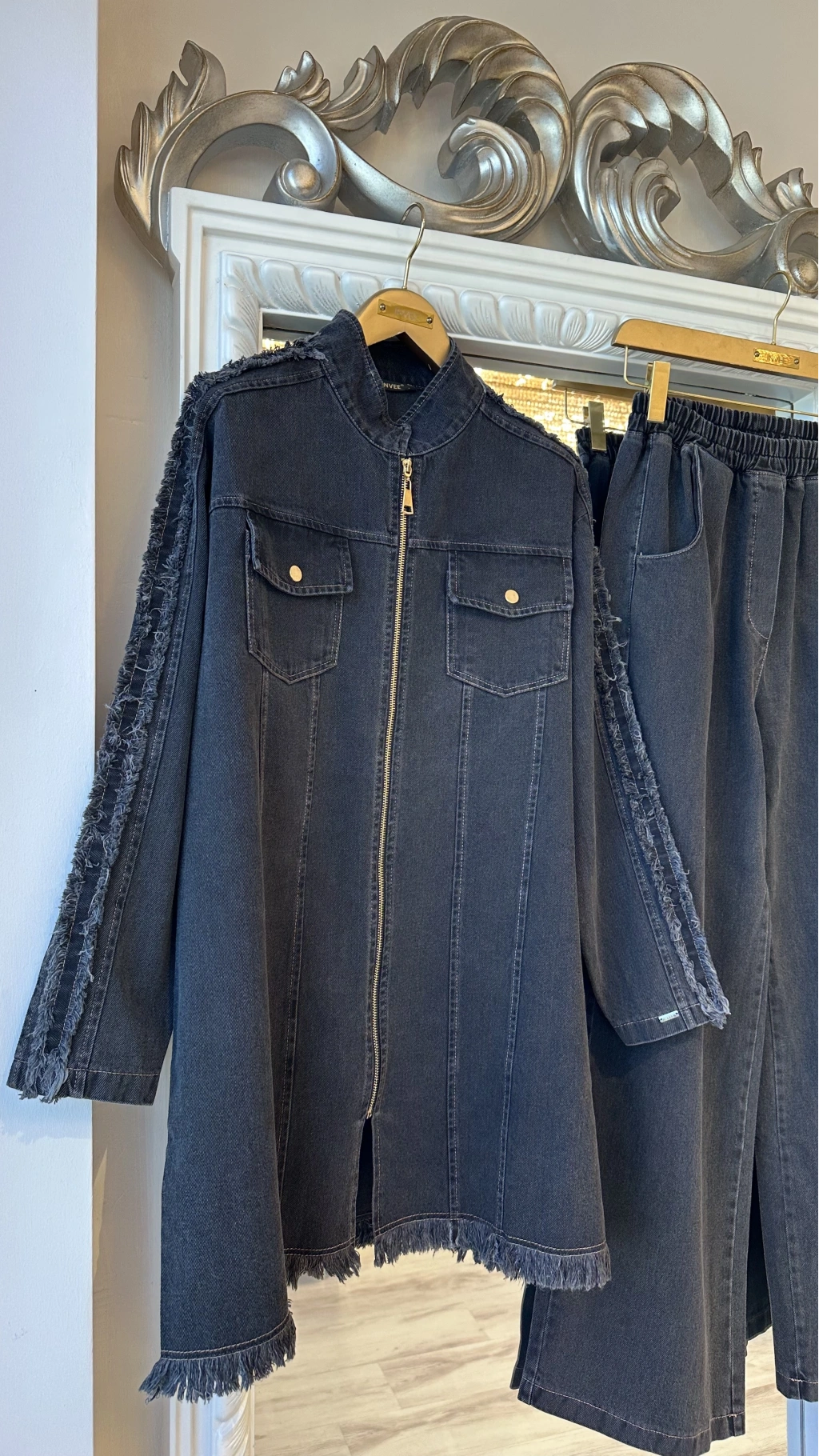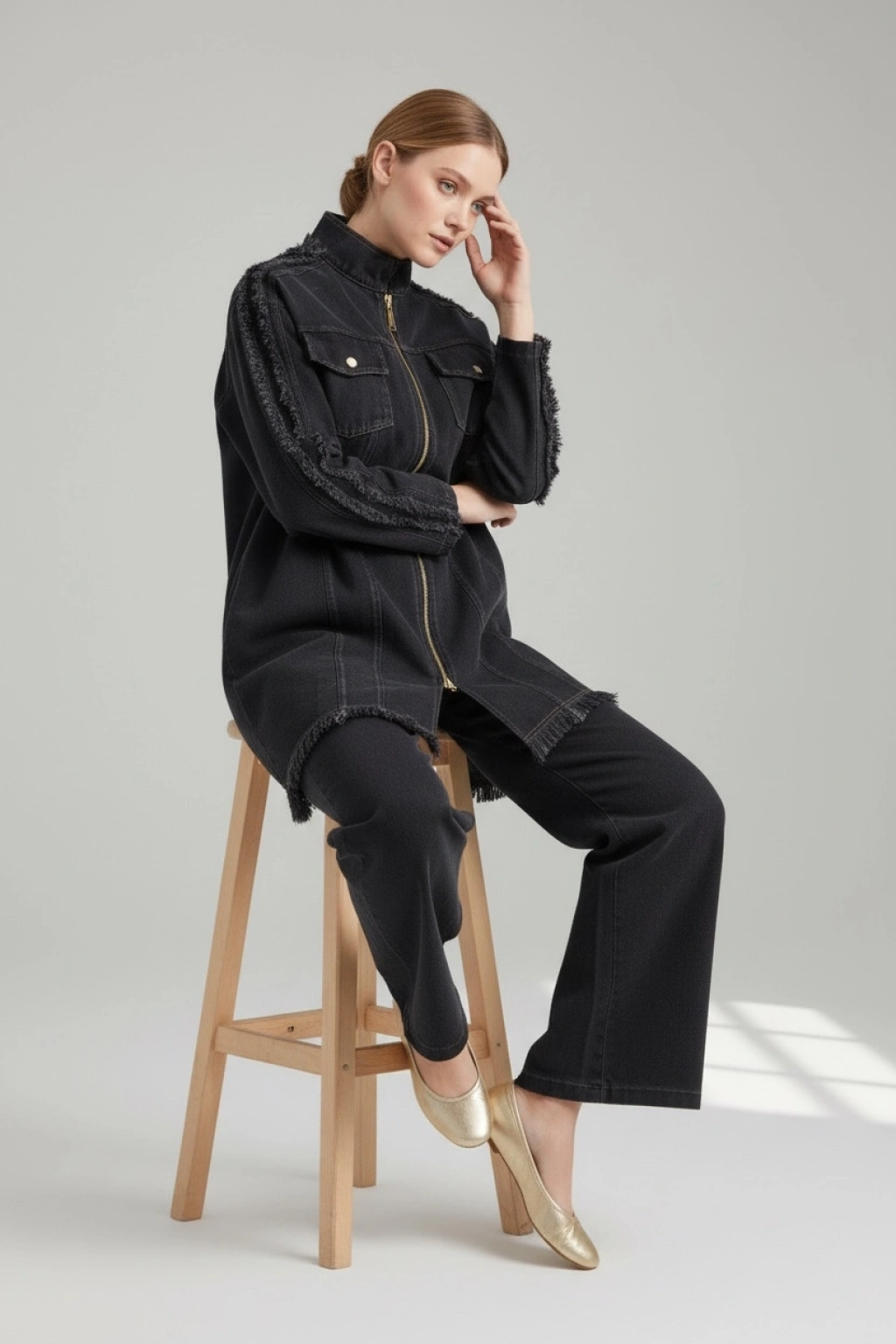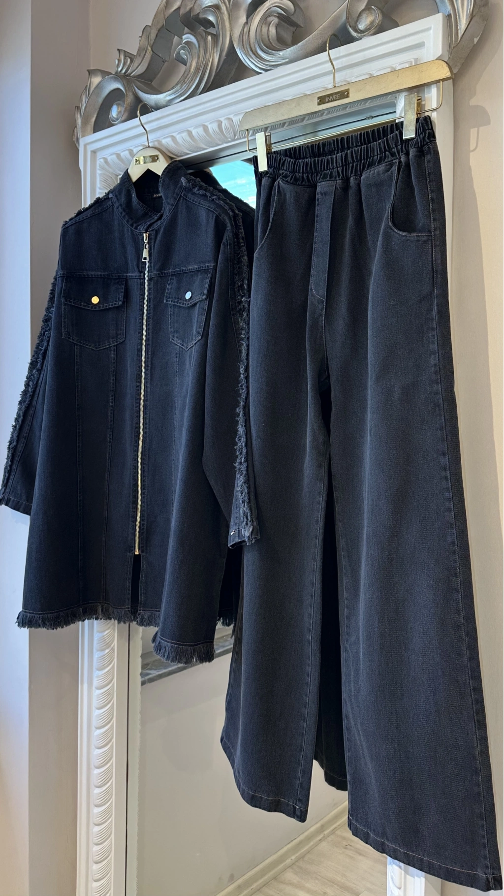 Modern ve zamansız tasarımıyla öne çıkan bu denim takım, rahat kalıbı ve şık detaylarıyla günlük ve tesettür kombinler için ideal bir seçenektir. Dayanıklı denim kumaşı sayesinde uzun süreli kullanım sunarken, fermuarlı ceket tasarımı modern bir görünüm sağlar.