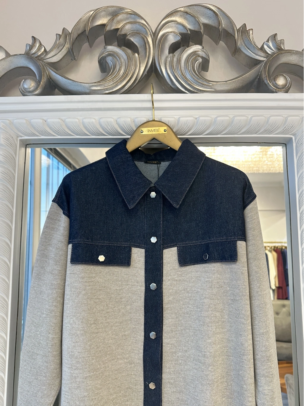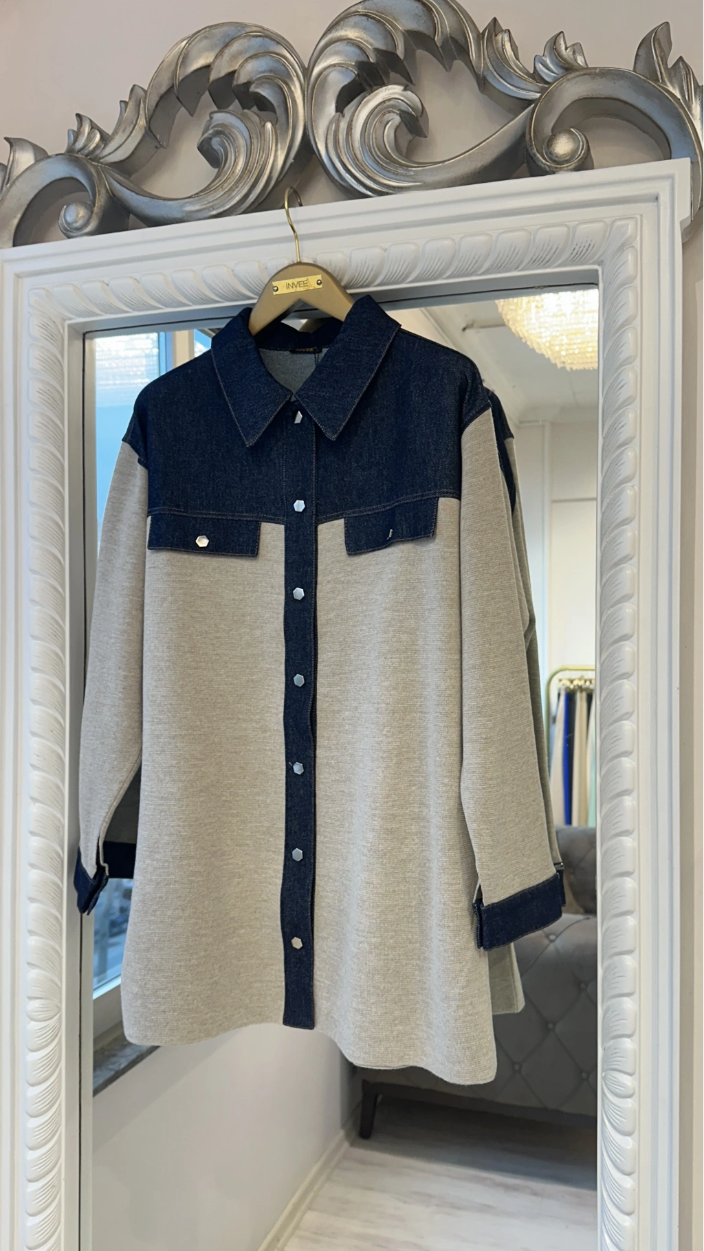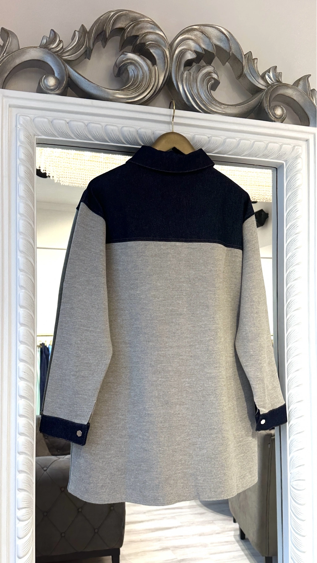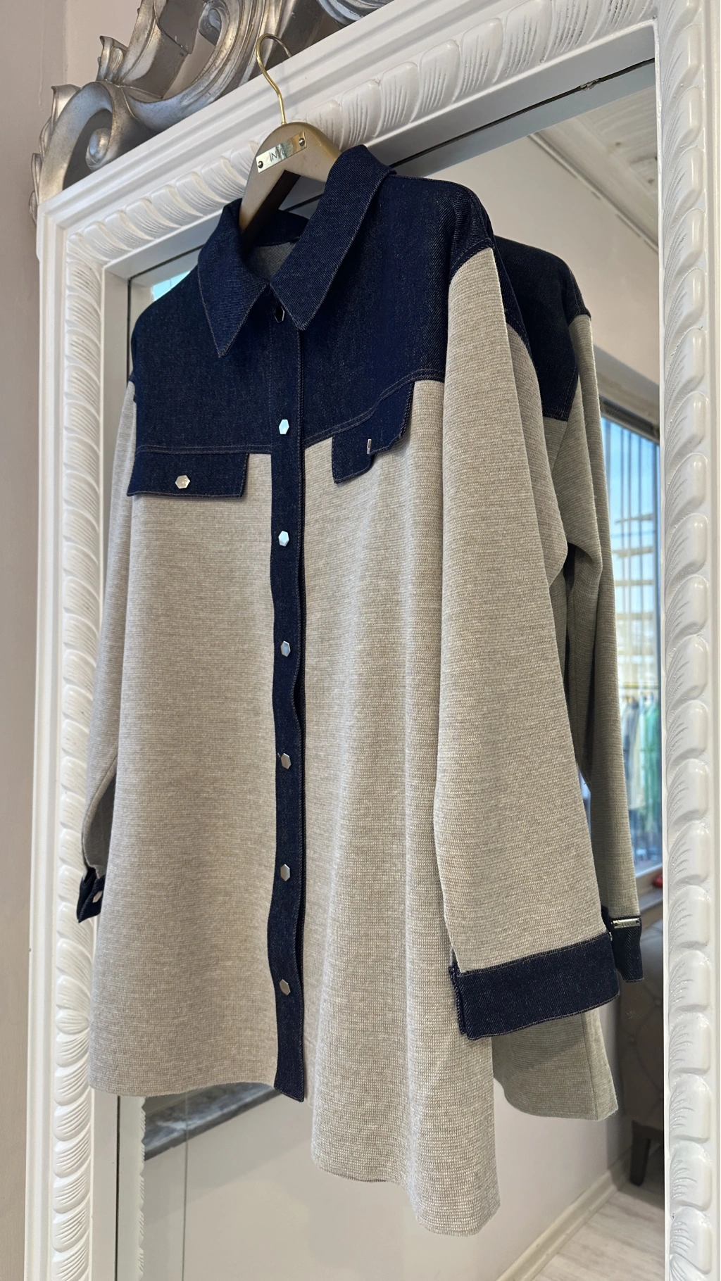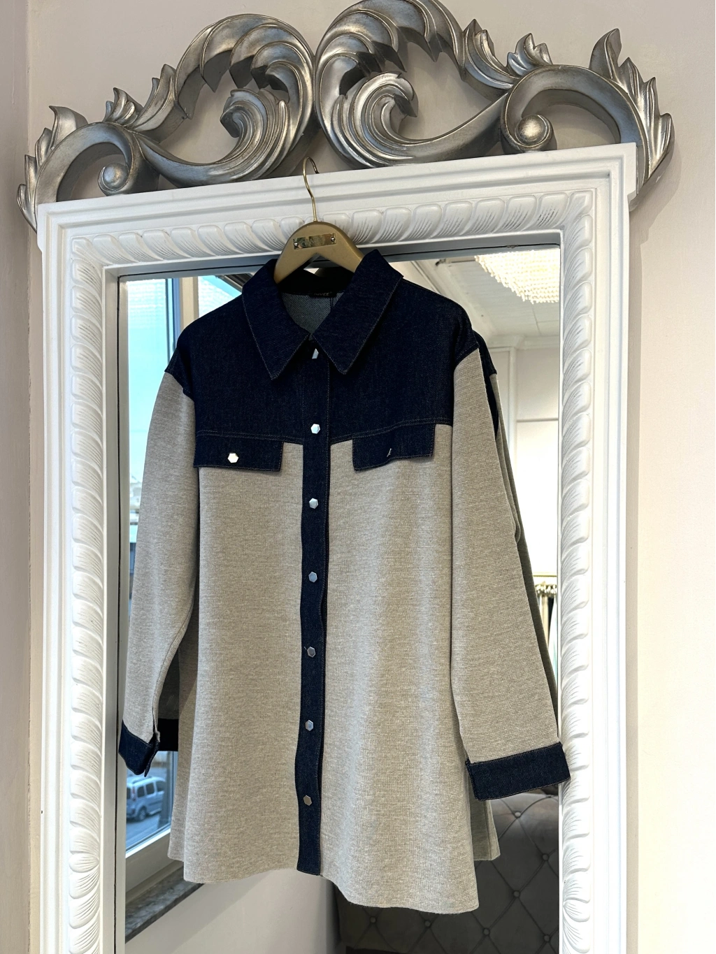 Modern tasarımı ve rahat kalıbıyla öne çıkan denim detaylı gömlek ceket, günlük şıklığı konforla buluşturur. Üst bölümde kullanılan denim kumaş detayı modele dinamik bir görünüm kazandırırken, gövde ve kol kısmındaki triko kumaş gün boyu rahat bir kullanım sağlar.