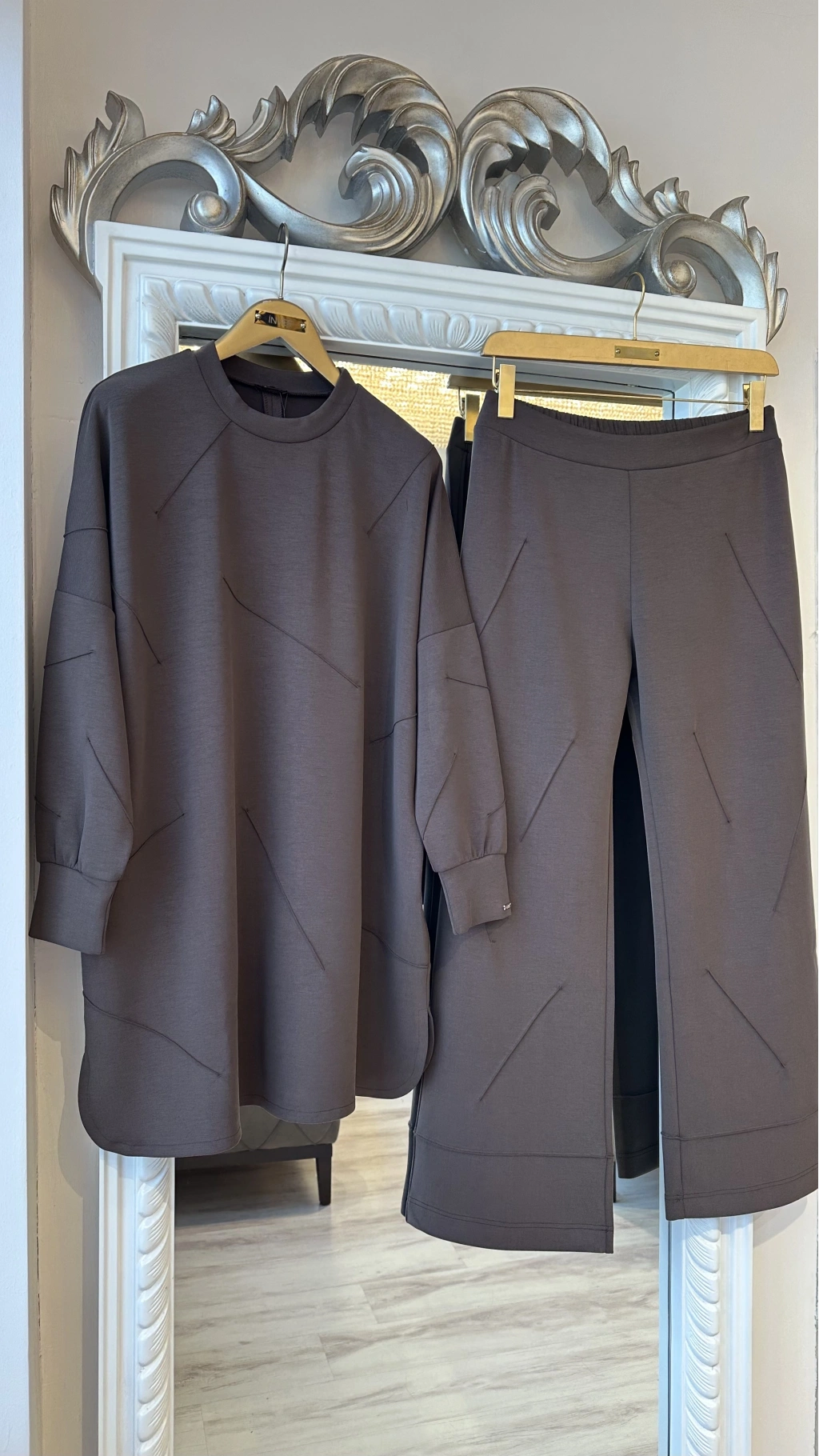 Tunik, rahat kesimi sayesinde vücudu sarmadan dökümlü bir duruş sunar. Pantolon ise esnek bel yapısı ve geniş kalıbıyla hareket özgürlüğü sağlar. Kumaş yapısı sayesinde ölçüler 5 cm’ye kadar esneme payına sahiptir, bu da ürünü farklı vücut tipleri için daha uyumlu hale getirir.