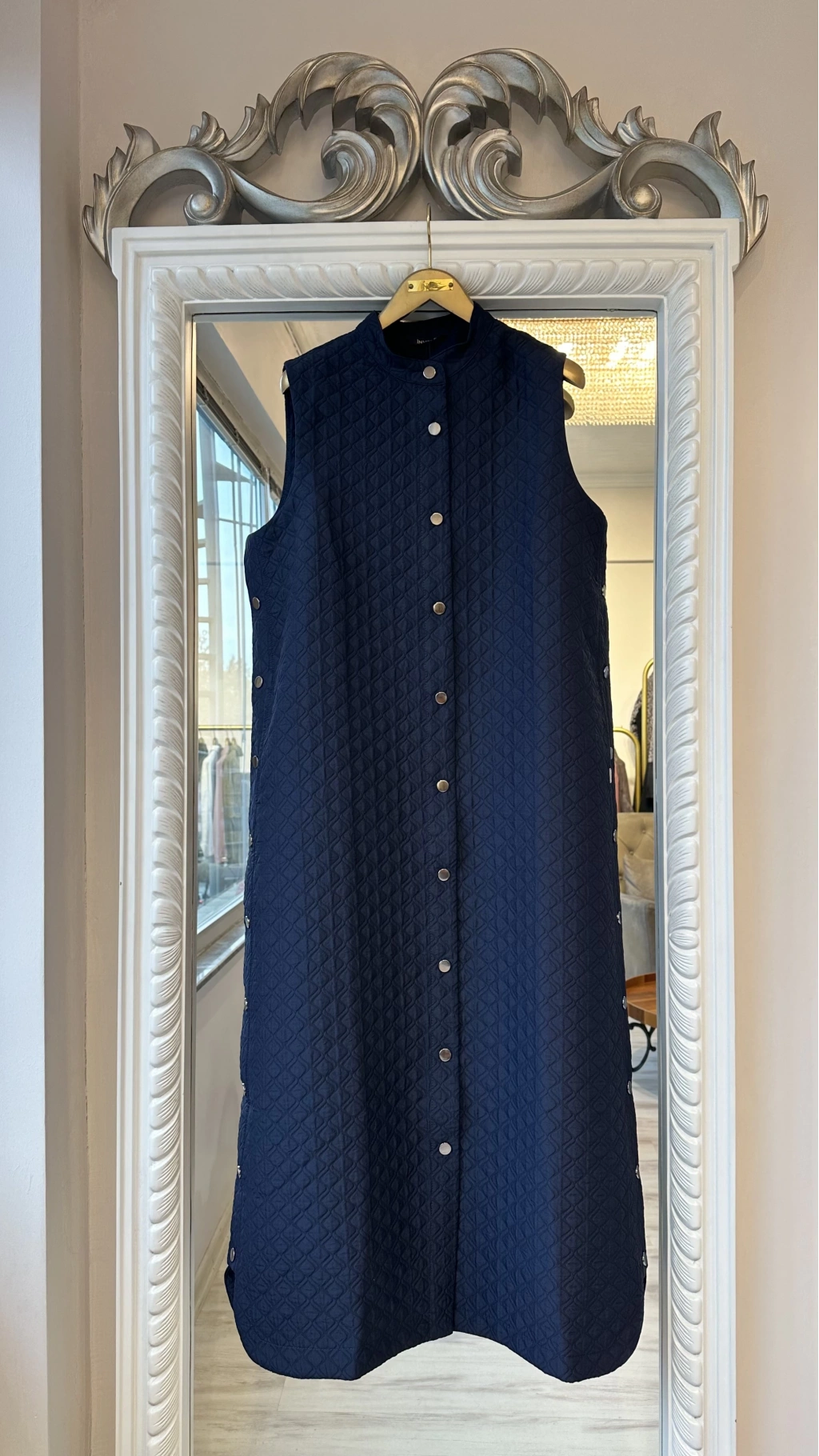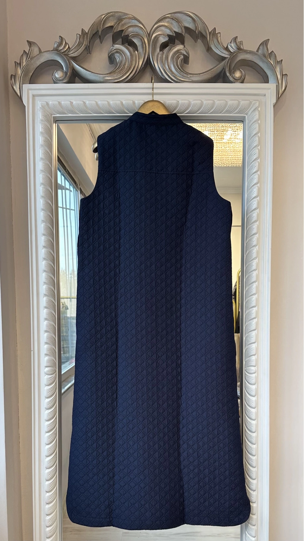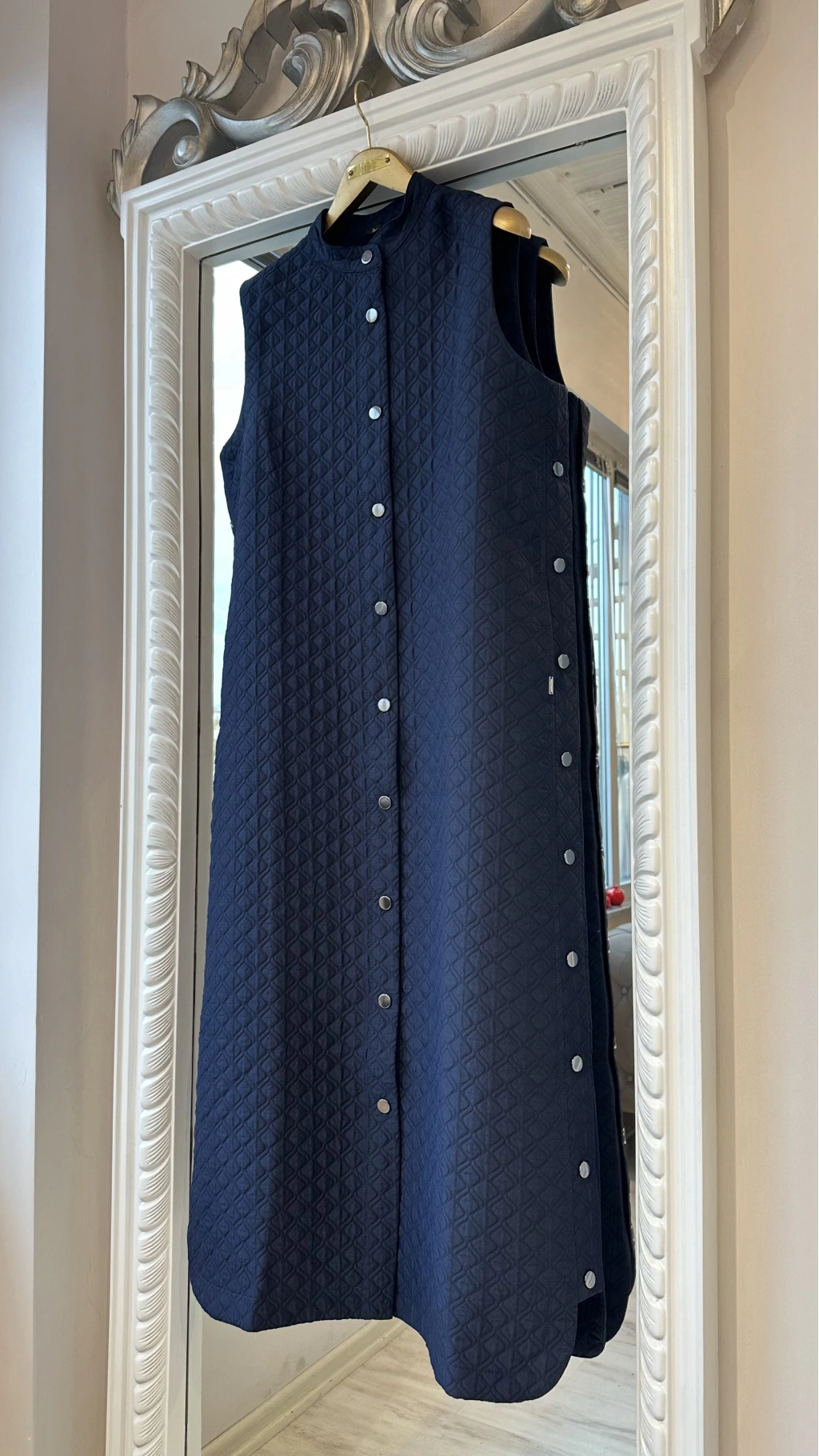 Zarif ve modern çizgileriyle öne çıkan bu lacivert uzun yelek, minimal tasarımıyla her stile sofistike bir dokunuş katıyor. Kapitone dokusu ve metal düğme detayları sayesinde hem klasik hem de şehirli bir görünüm sunar.