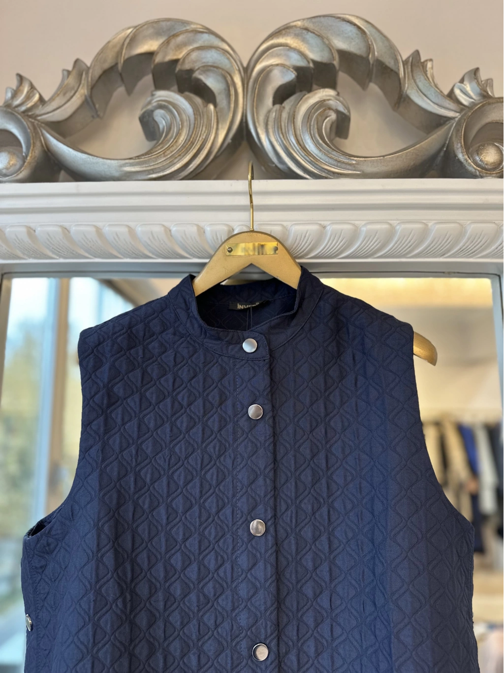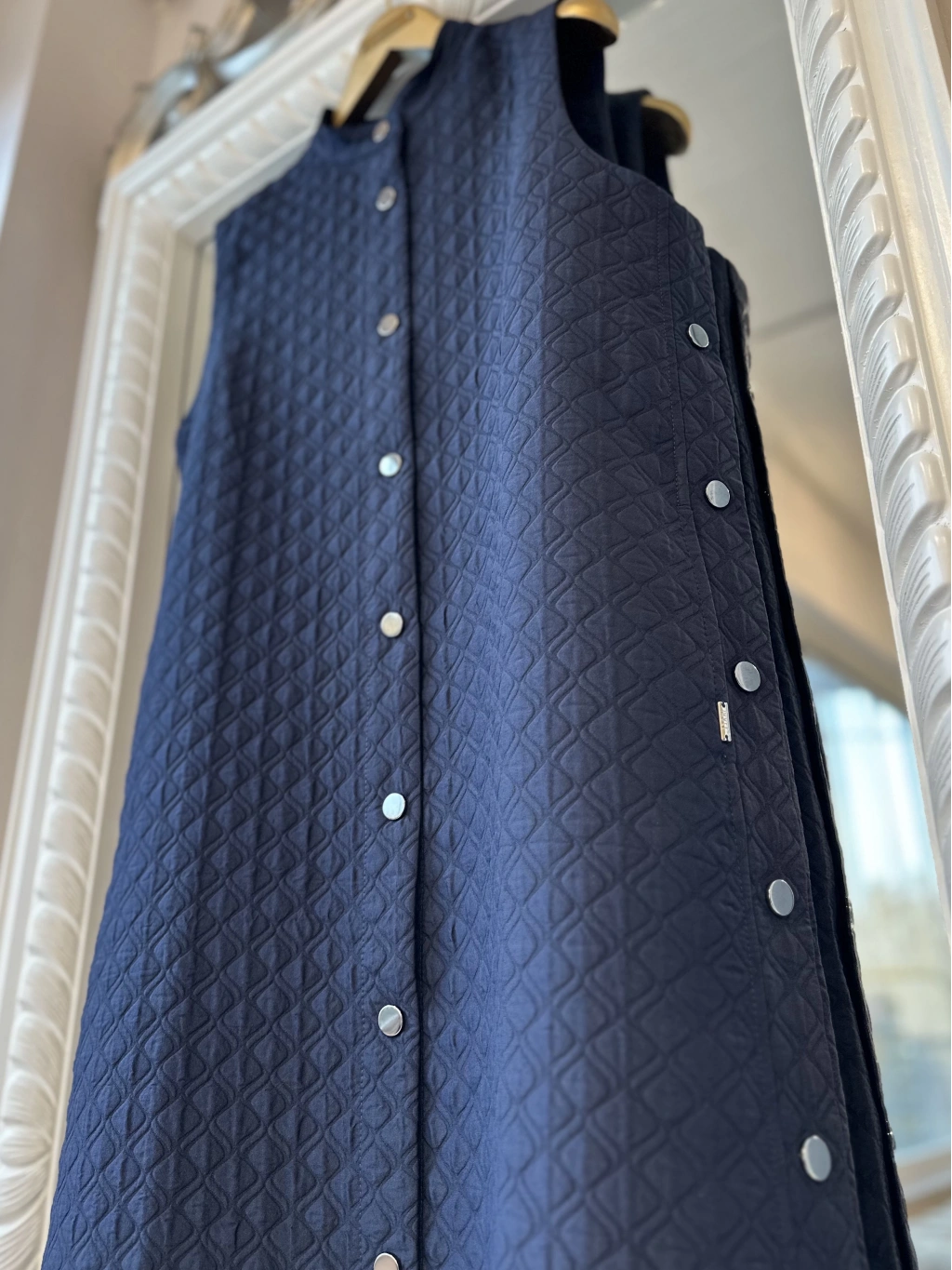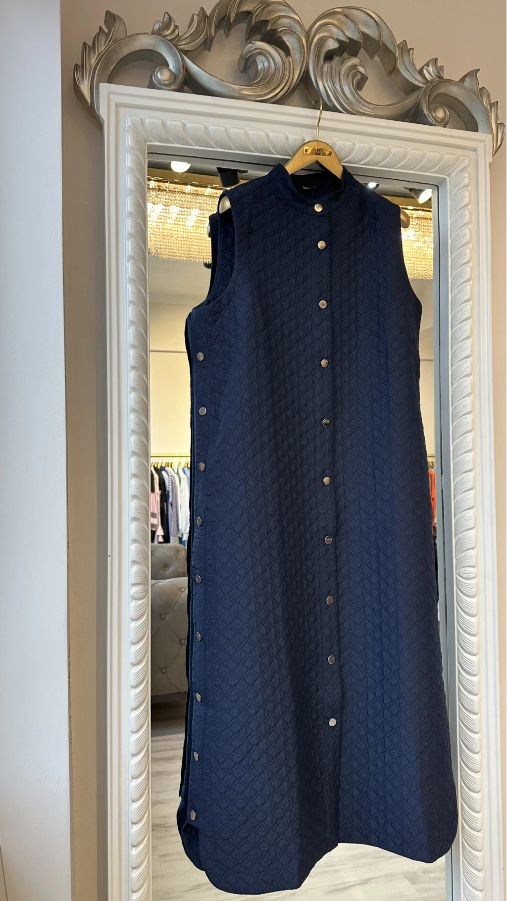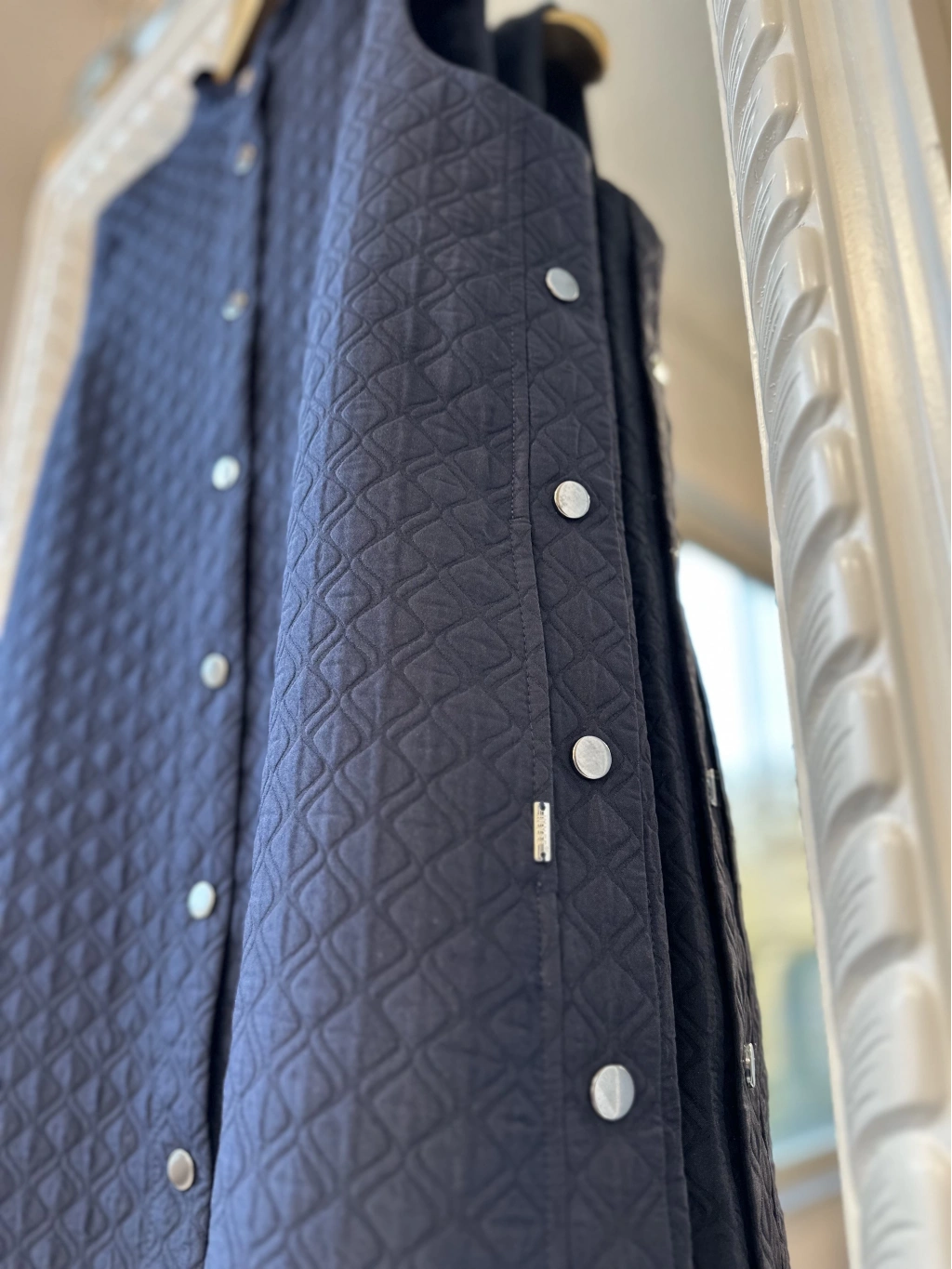 Zarif ve modern çizgileriyle öne çıkan bu lacivert uzun yelek, minimal tasarımıyla her stile sofistike bir dokunuş katıyor. Kapitone dokusu ve metal düğme detayları sayesinde hem klasik hem de şehirli bir görünüm sunar.