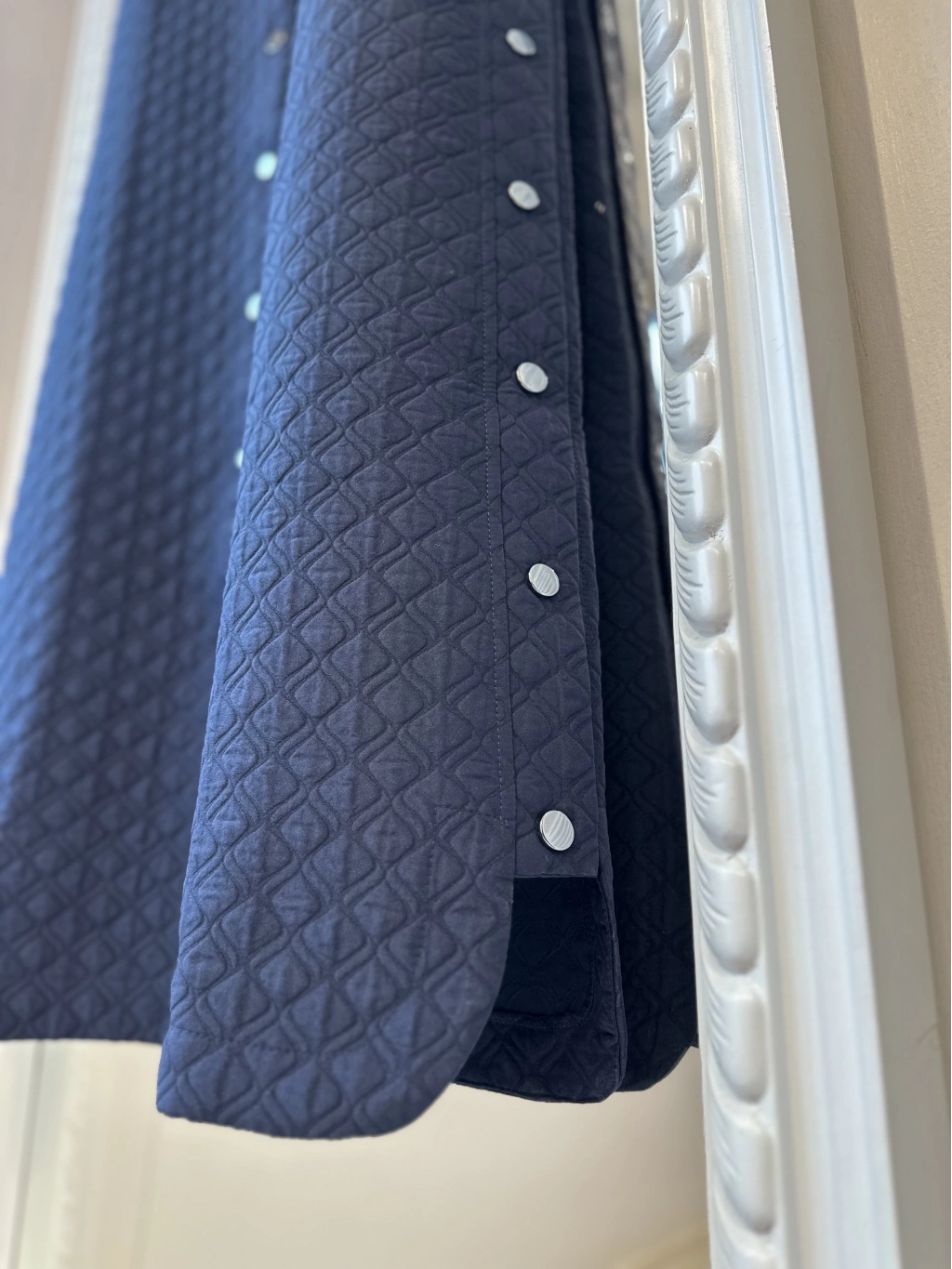 Detay: Kapitone dikiş deseni, metal düğme kapama