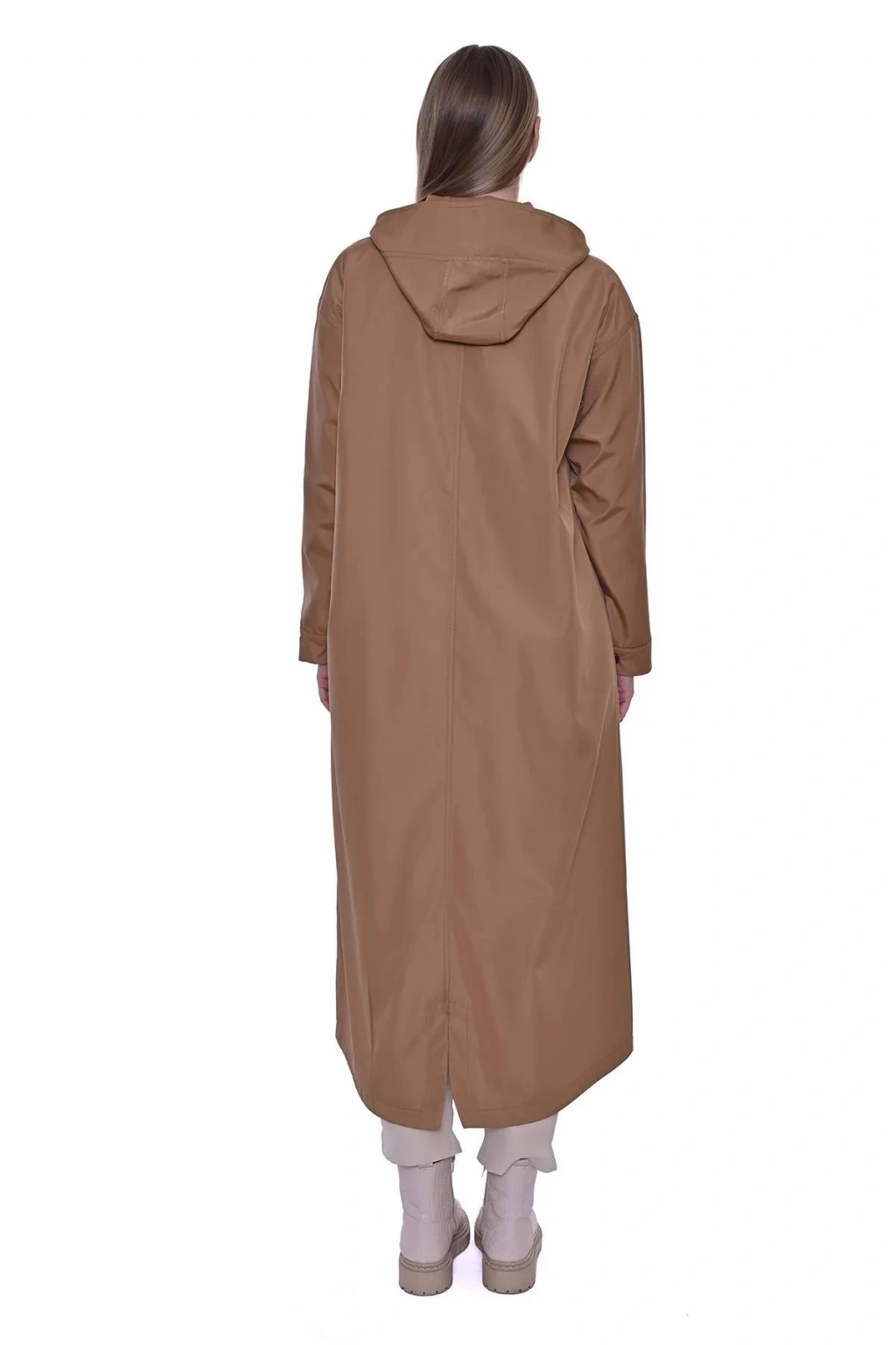 İnvee Kapüşonlu Uzun Yağmurluk - Camel