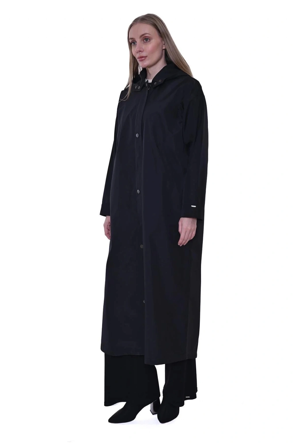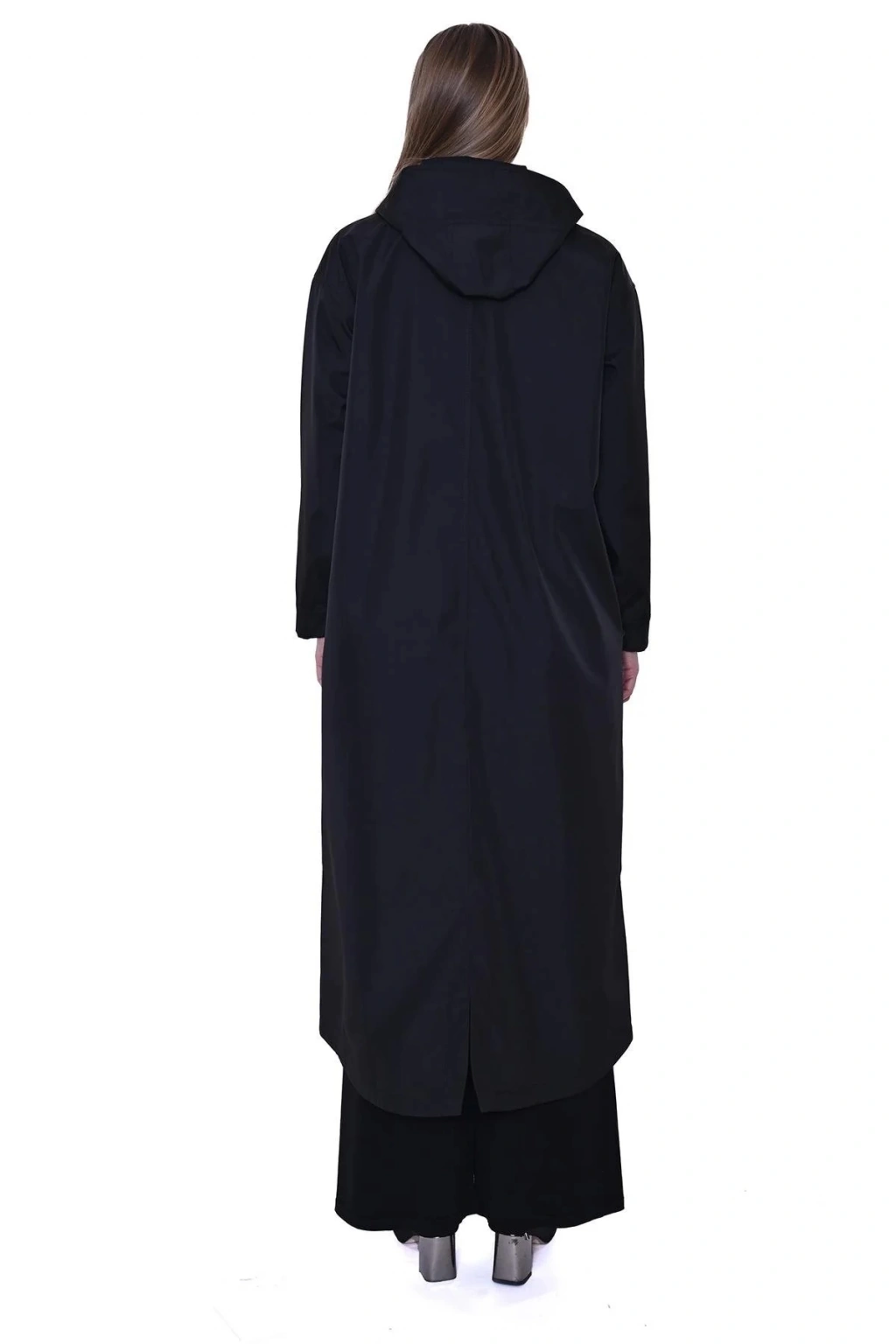 İnvee Kapüşonlu Uzun Yağmurluk - Siyah