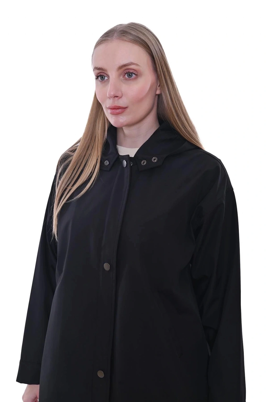 İNVEE Kapüşonlu, Çıtçıt Kapamalı Uzun Yağmurluk