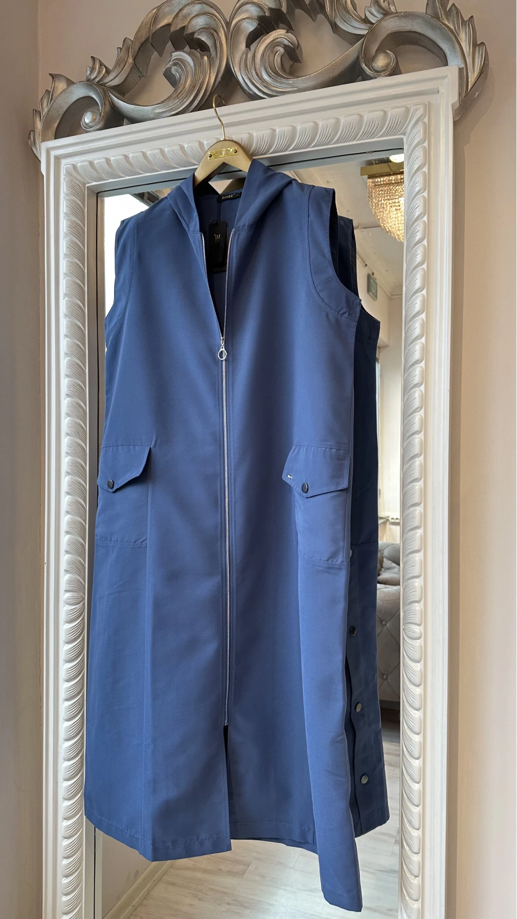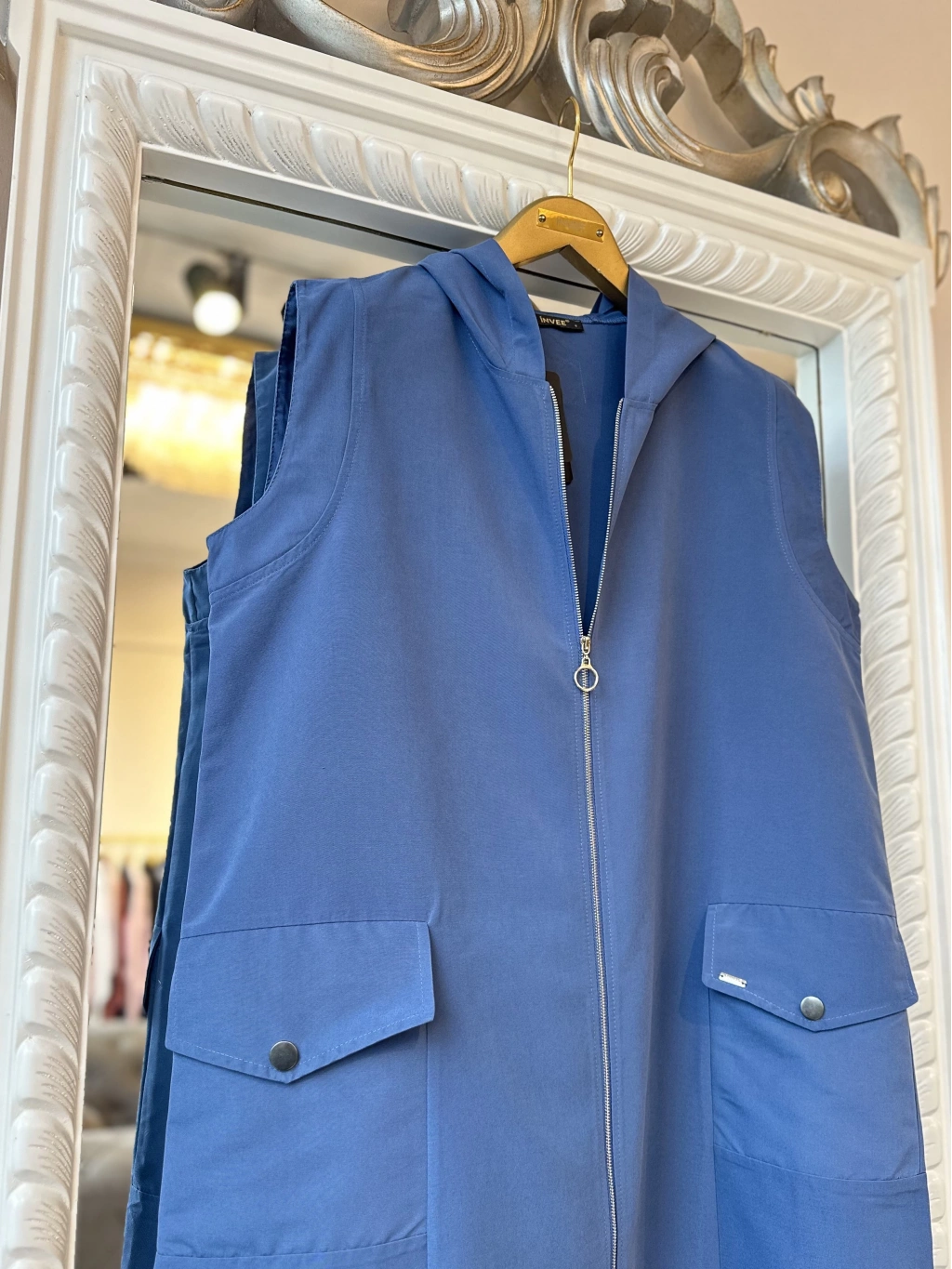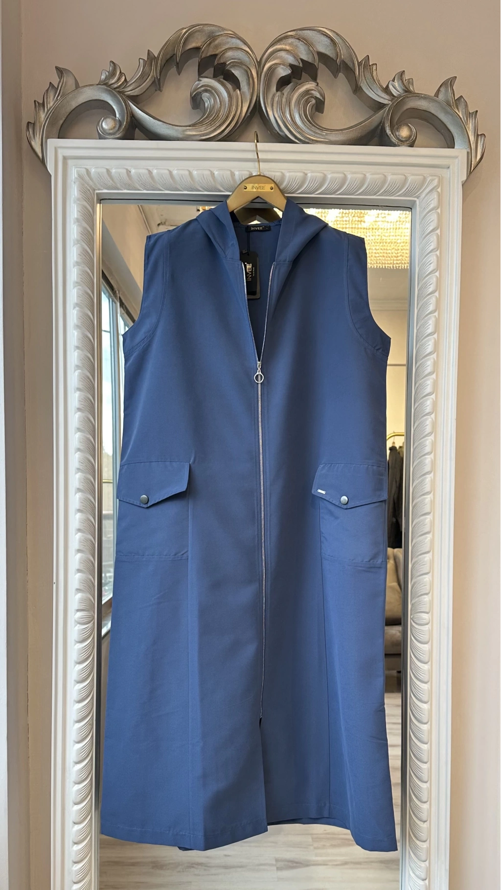 Zamansız tasarım, modern detaylarla birleşiyor. İndigo Kapüşonlu Uzun Yelek, sade ama güçlü bir siluetiyle sezonun en çok tercih edilen tamamlayıcı parçalarından biri.