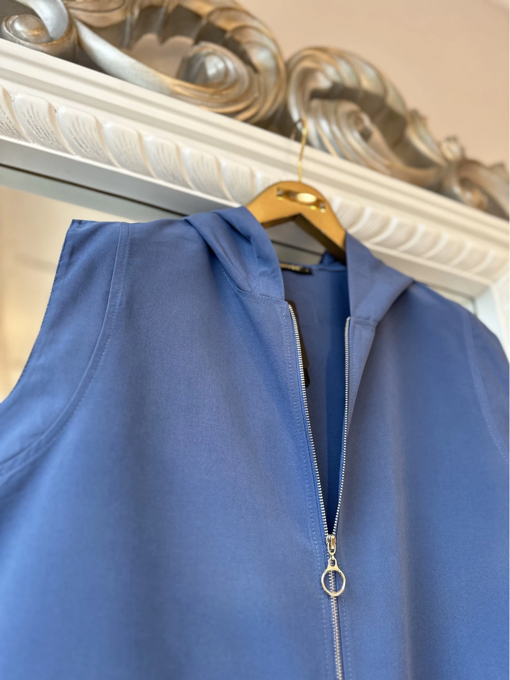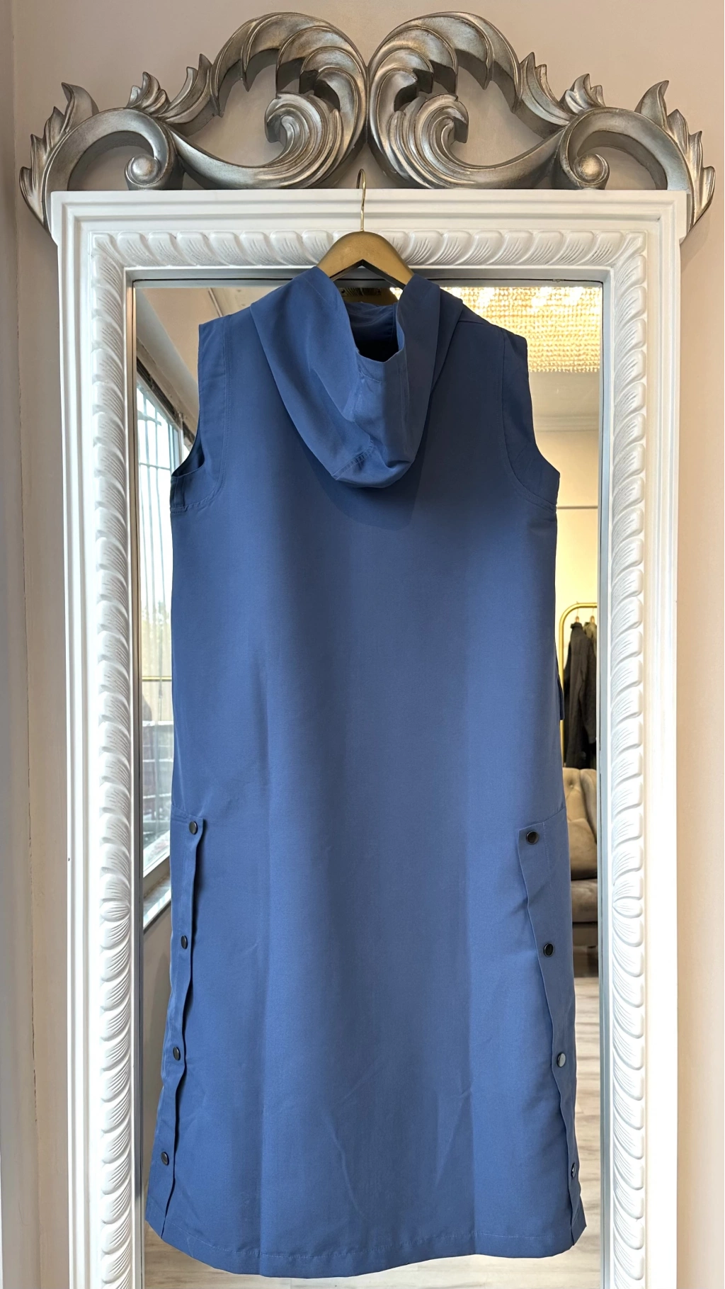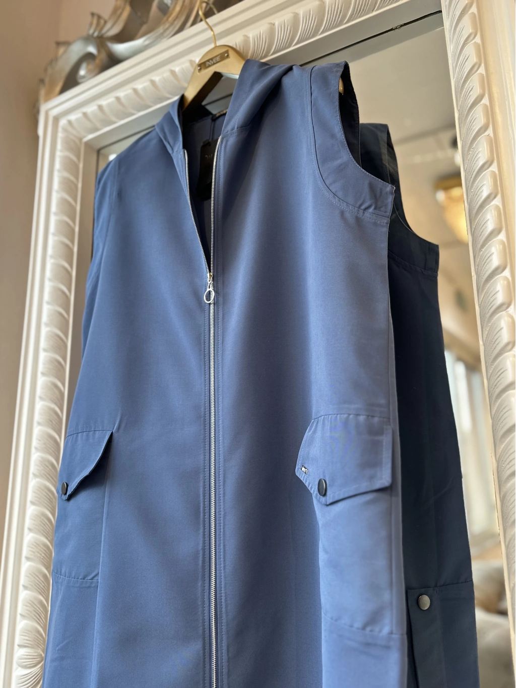 Zamansız tasarım, modern detaylarla birleşiyor. İndigo Kapüşonlu Uzun Yelek, sade ama güçlü bir siluetiyle sezonun en çok tercih edilen tamamlayıcı parçalarından biri.