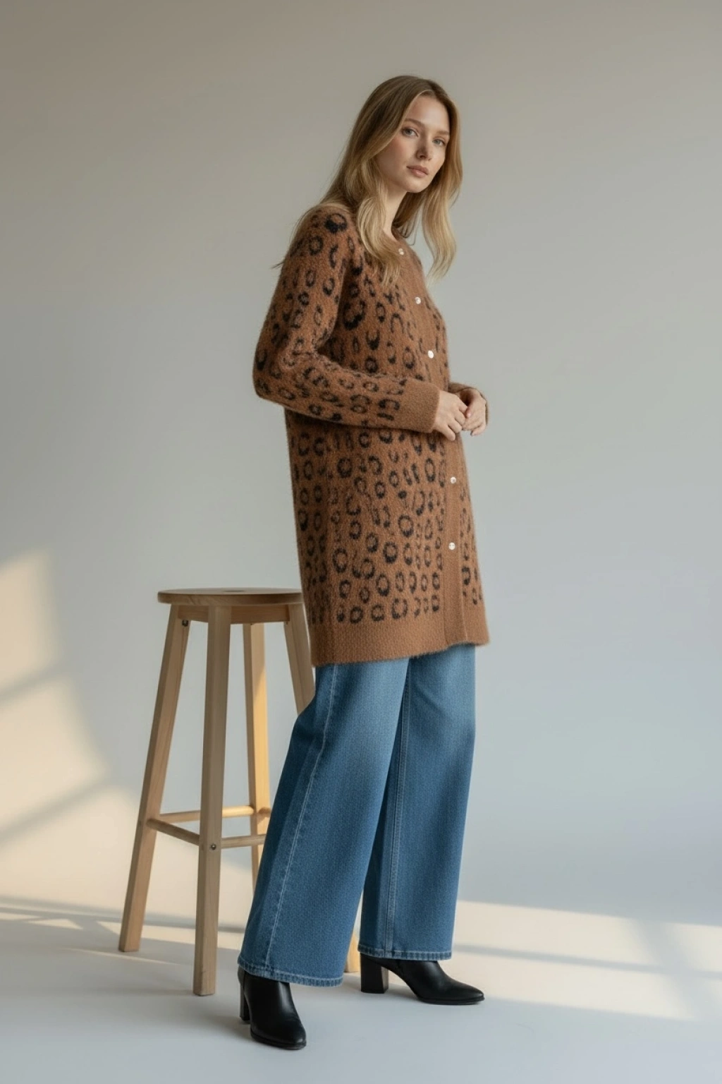Zamansız desenleri ve sıcak dokusuyla öne çıkan desenli triko hırka, günlük şıklığa modern bir yorum katıyor. Yumuşak ve tok triko kumaşı sayesinde serin havalarda konforlu bir kullanım sunarken, allover desen yapısı modele hareketli ve stil sahibi bir görünüm kazandırır.