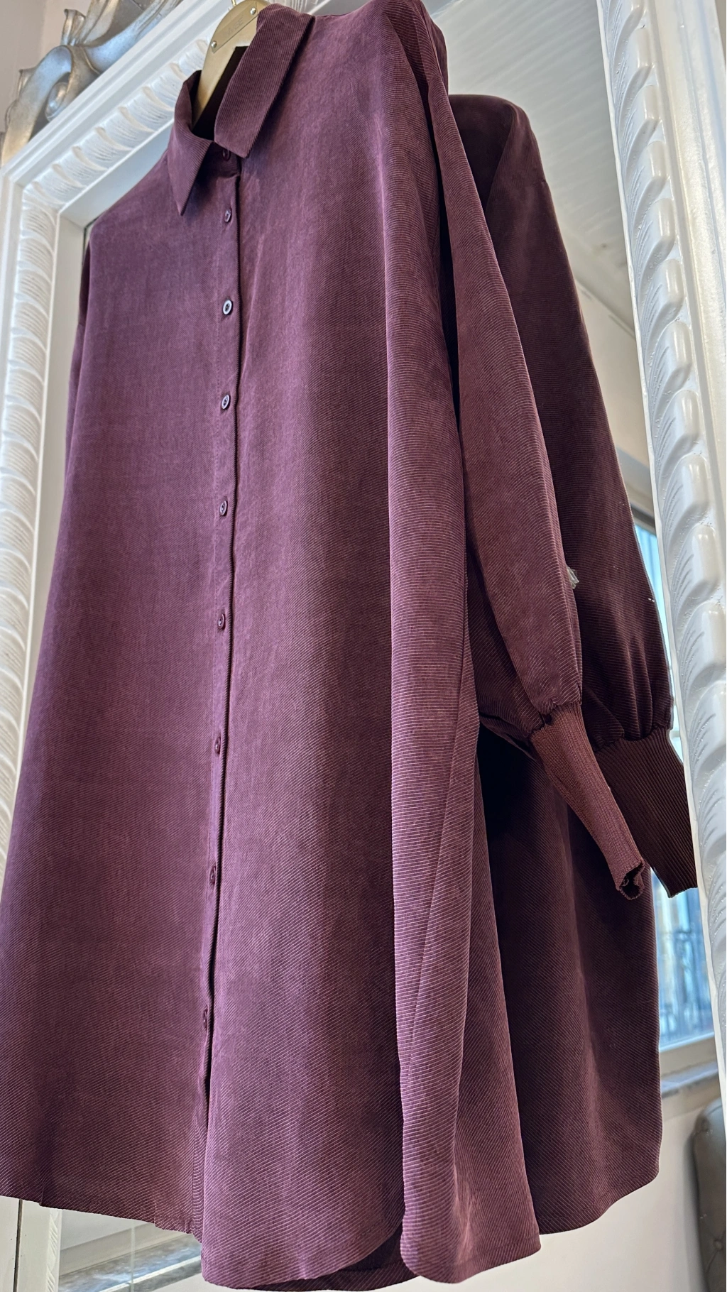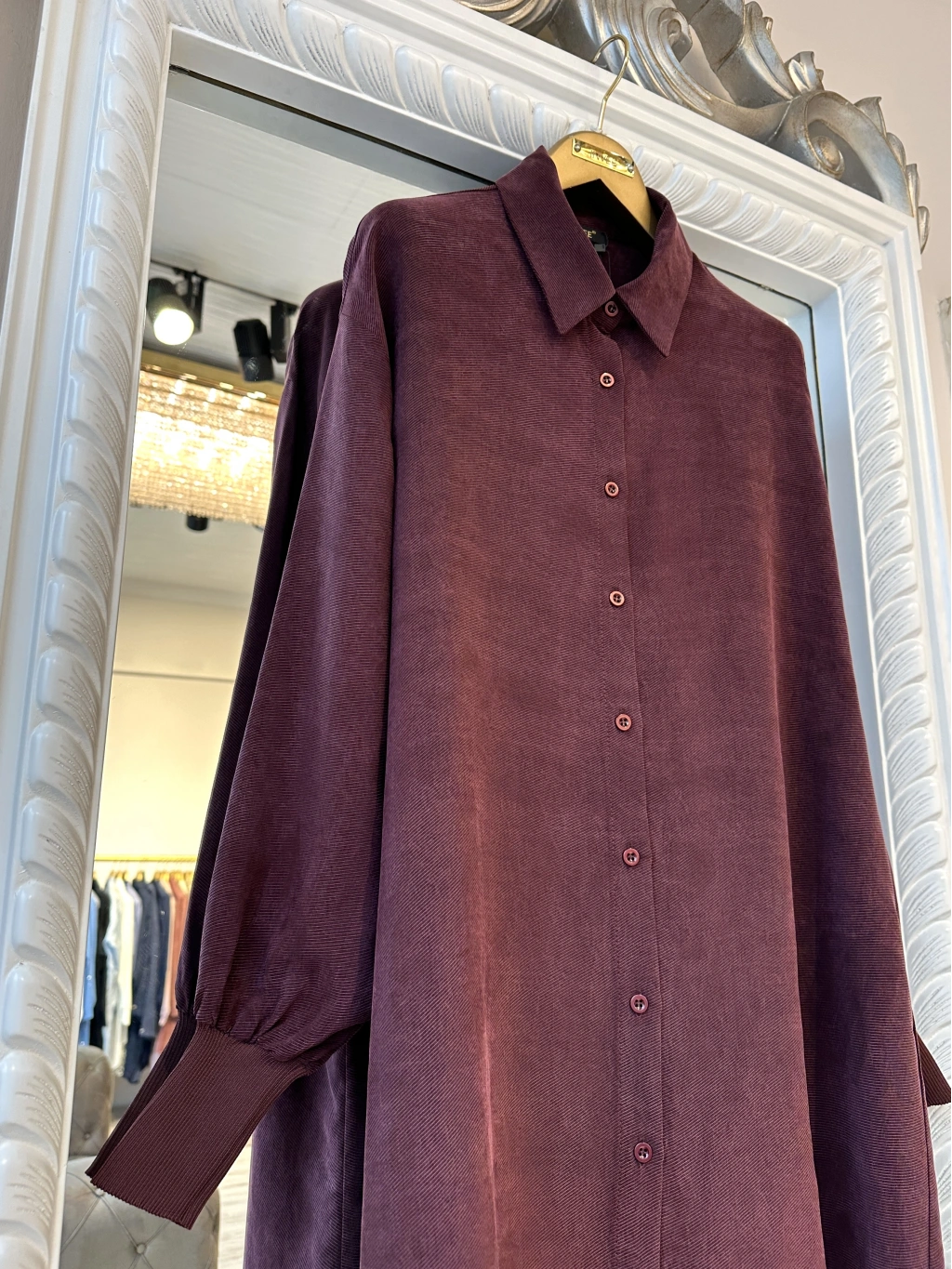 Klasik yaka detayı ve önden tam düğmeli tasarımı sayesinde hem günlük hem de ofis stiline kolayca uyum sağlar. Kol uçlarındaki lastikli manşetler modern bir dokunuş yaratırken, dökümlü kesimi vücut hatlarını sıkmadan zarif bir siluet oluşturur.