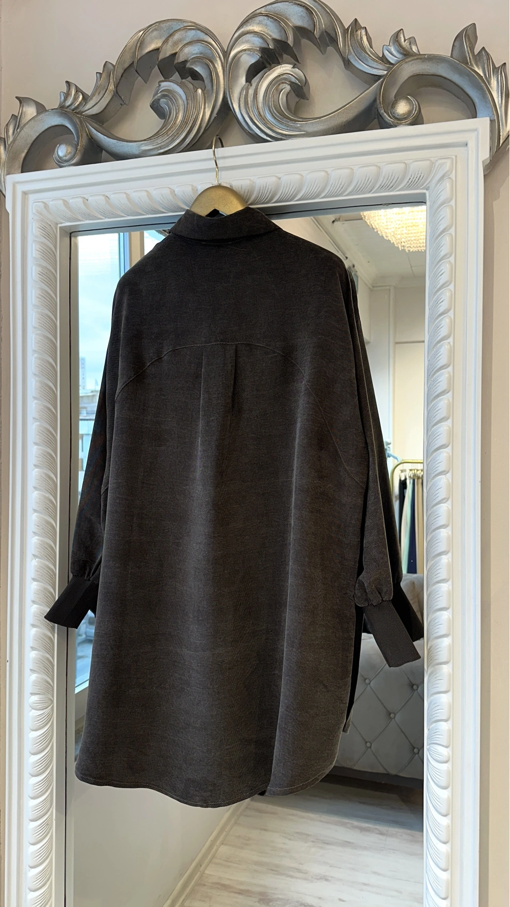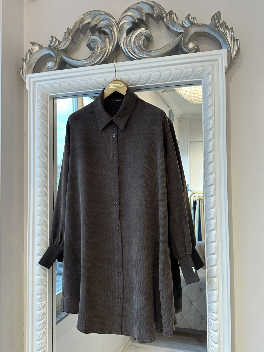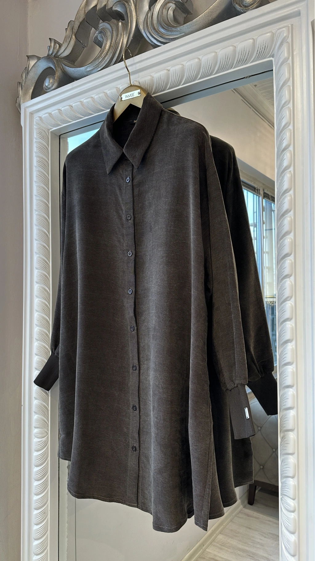 Zarif dokusu ve rahat kalıbıyla dikkat çeken INVEЕ Kahverengi Çizgili Uzun Gömlek, konforu ve şıklığı bir arada arayan kadınlar için ideal bir seçimdir. Lyocell kumaşın yumuşak dokusu, vücuda sıcaklık ve lüks bir his kazandırırken; minimalist kesimiyle sade ama iddialı bir görünüm sunar.