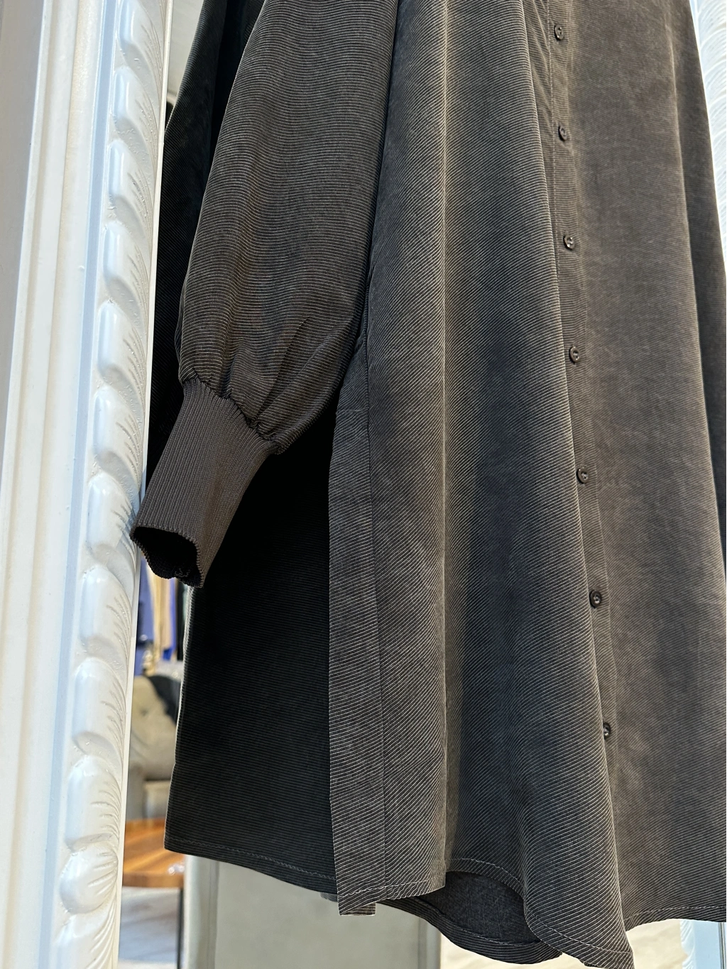 Klasik yaka detayı ve önden tam düğmeli tasarımı sayesinde hem günlük hem de ofis stiline kolayca uyum sağlar. Kol uçlarındaki lastikli manşetler modern bir dokunuş yaratırken, dökümlü kesimi vücut hatlarını sıkmadan zarif bir siluet oluşturur.
