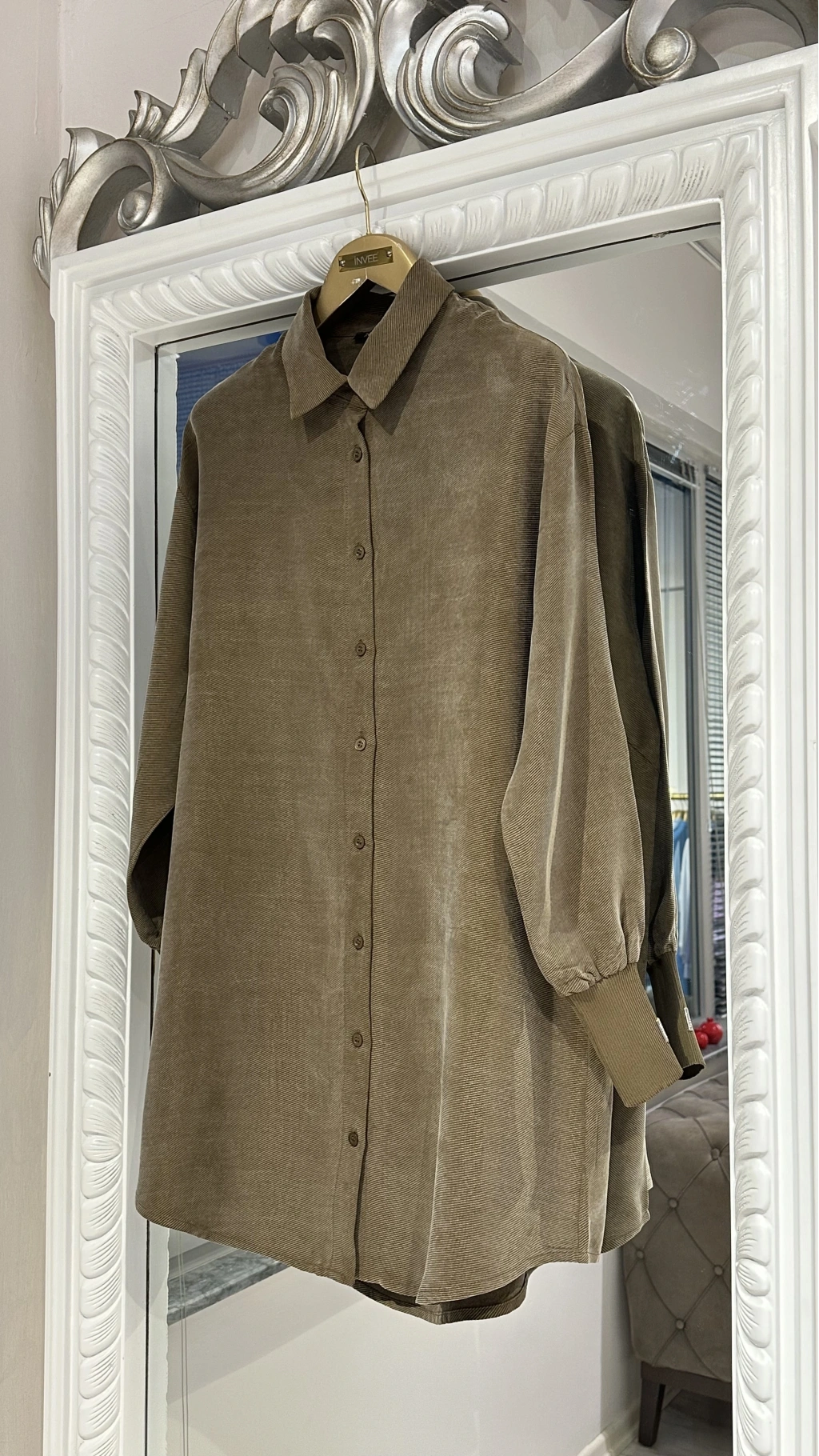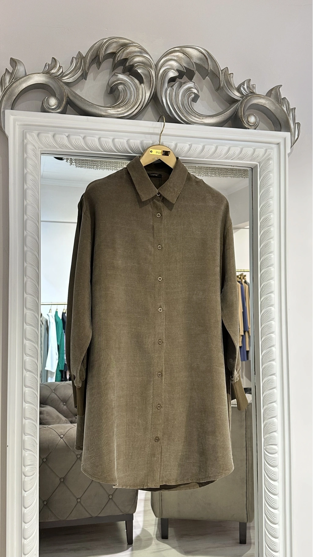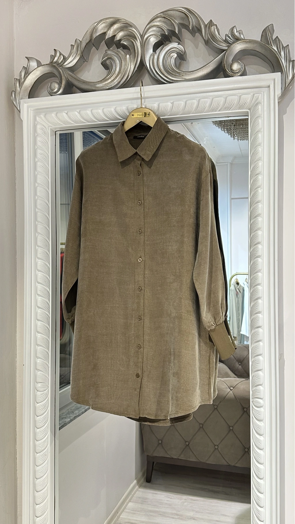 Zarif dokusu ve rahat kalıbıyla dikkat çeken INVEЕ Vizon Kadife Dokulu Uzun Gömlek, konforu ve şıklığı bir arada arayan kadınlar için ideal bir seçimdir. Kadife kumaşın yumuşak dokusu, vücuda sıcaklık ve lüks bir his kazandırırken; minimalist kesimiyle sade ama iddialı bir görünüm sunar.