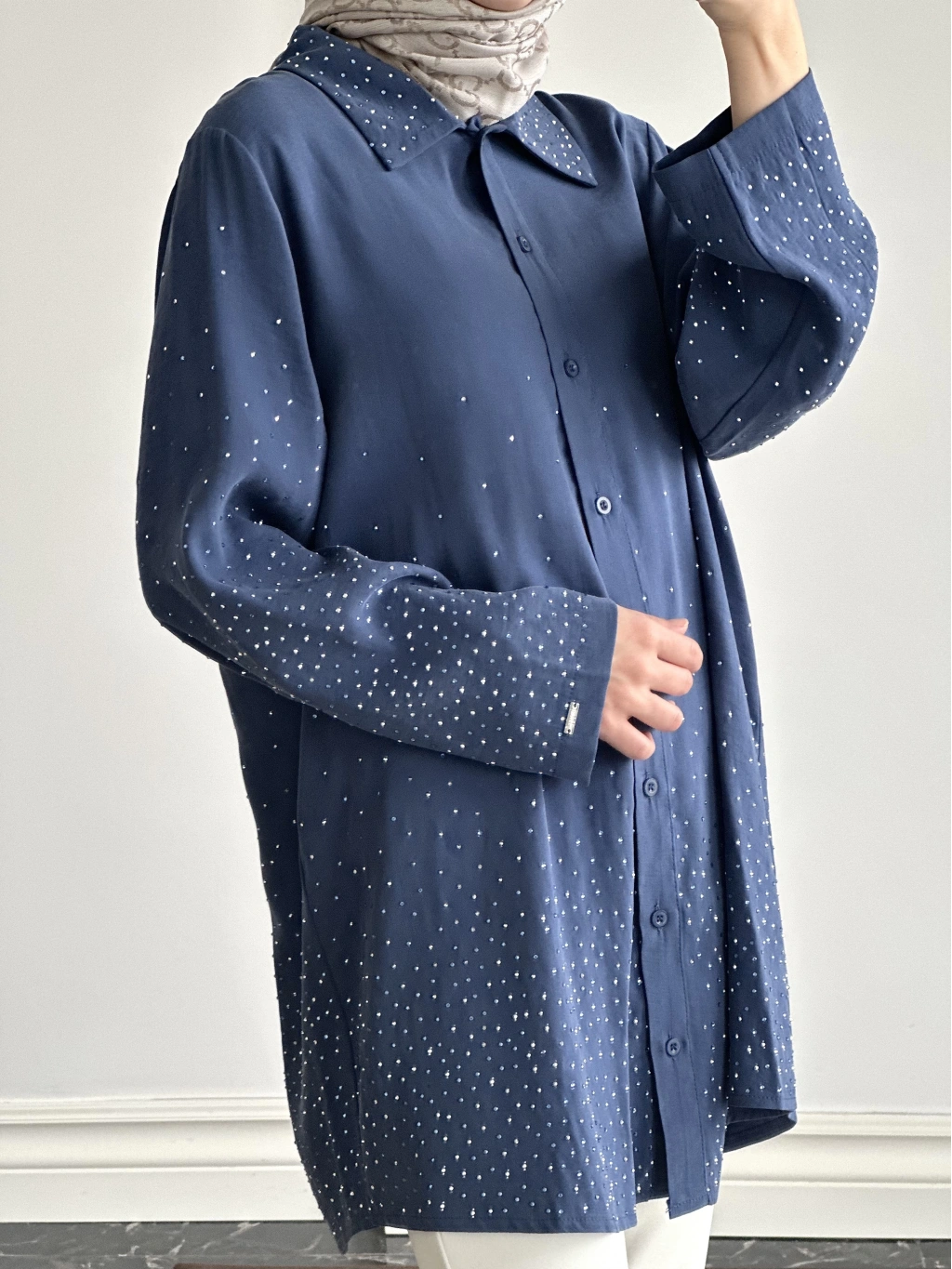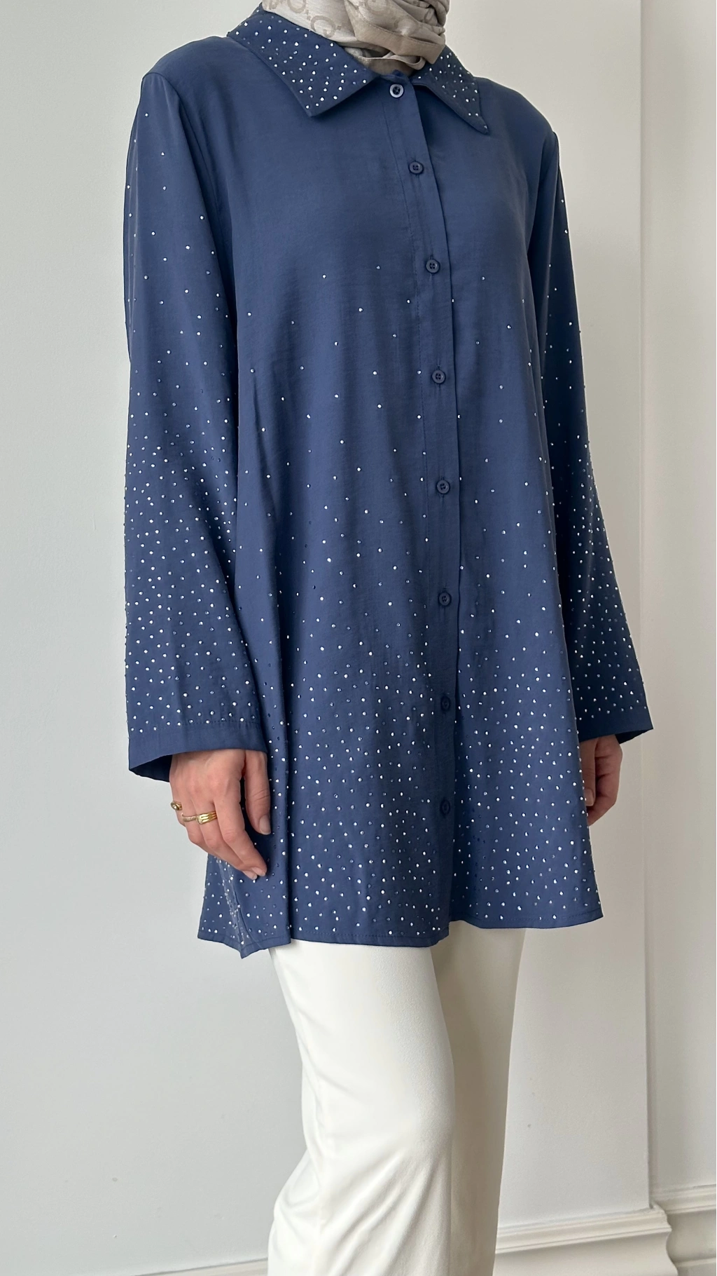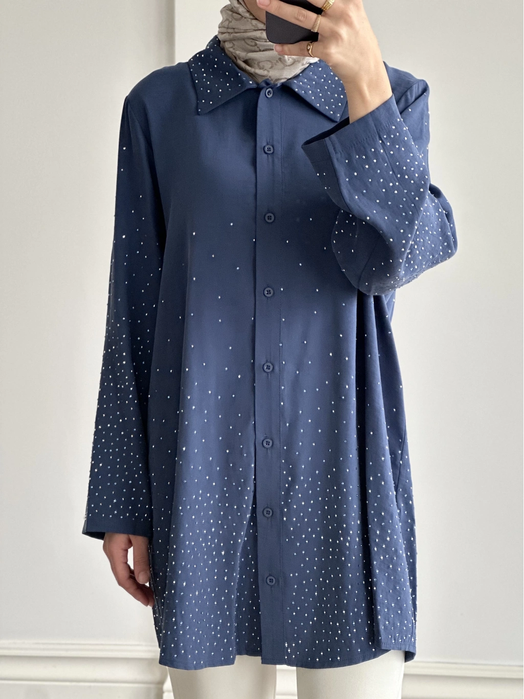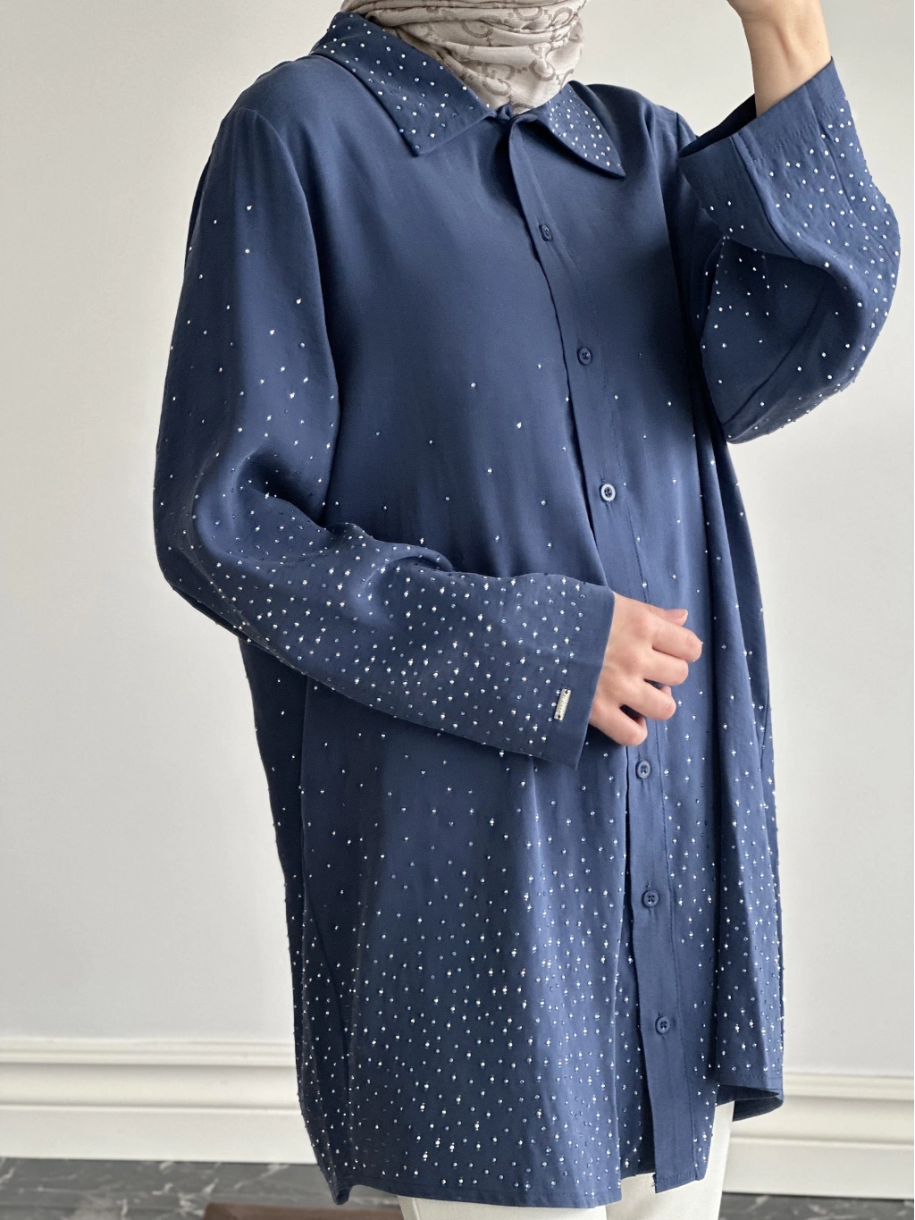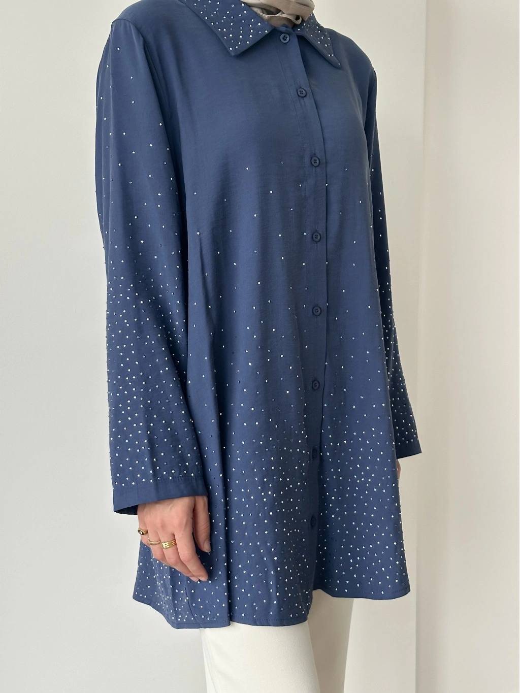 İnvee Taş Baskılı Gömlek - İndigo