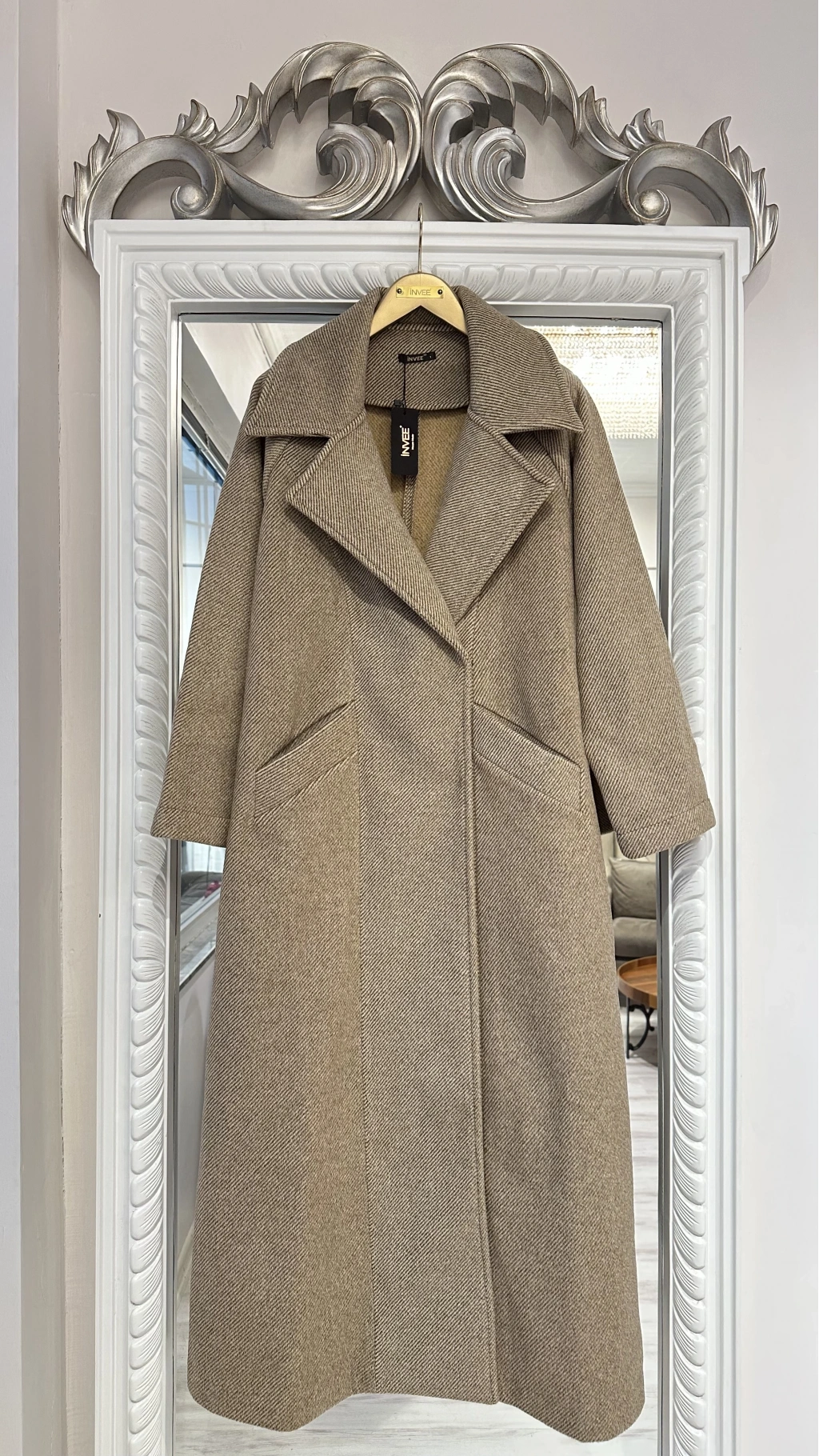 Zamansız şıklığın modern yorumunu sunan INVEЕ Bej Klasik Kesim Uzun Kaban, sade ama etkileyici tarzıyla soğuk mevsimlerin kurtarıcı parçası oluyor. Minimal çizgileri, dökümlü duruşu ve zarif kumaş dokusuyla sofistike bir görünüm elde etmenizi sağlar.