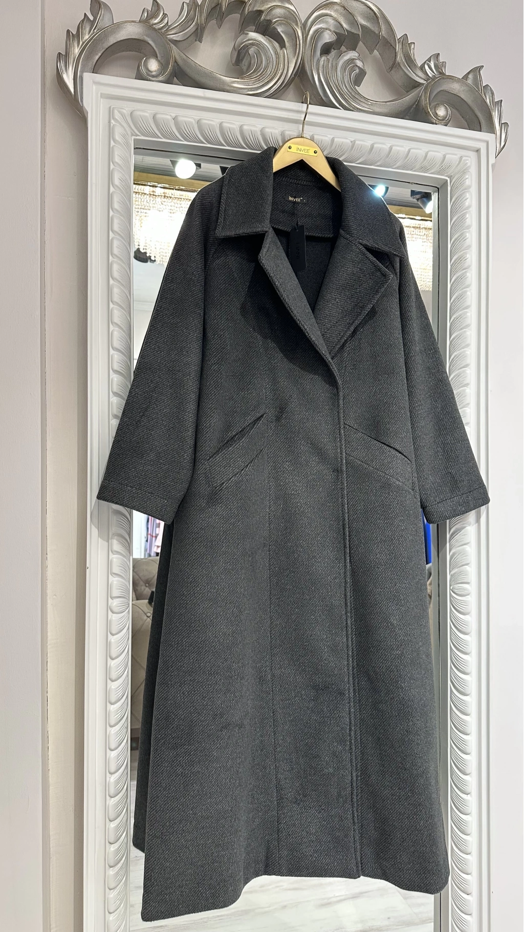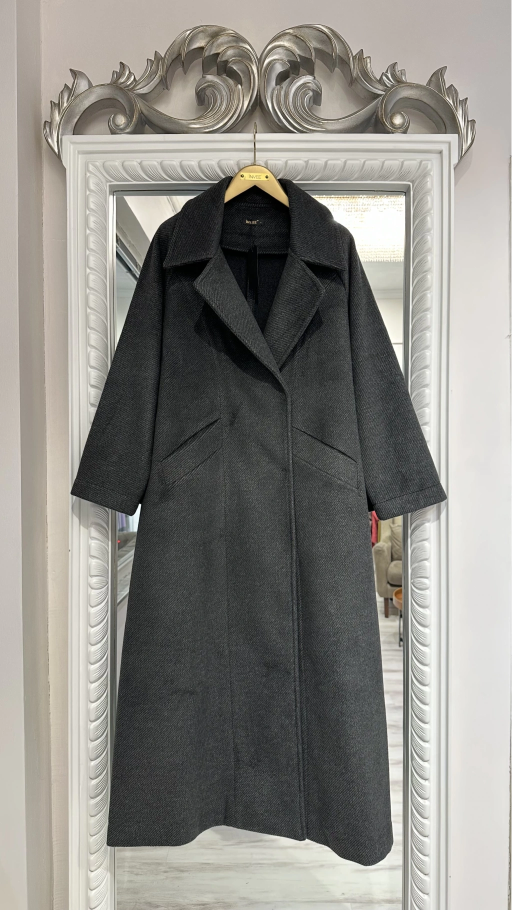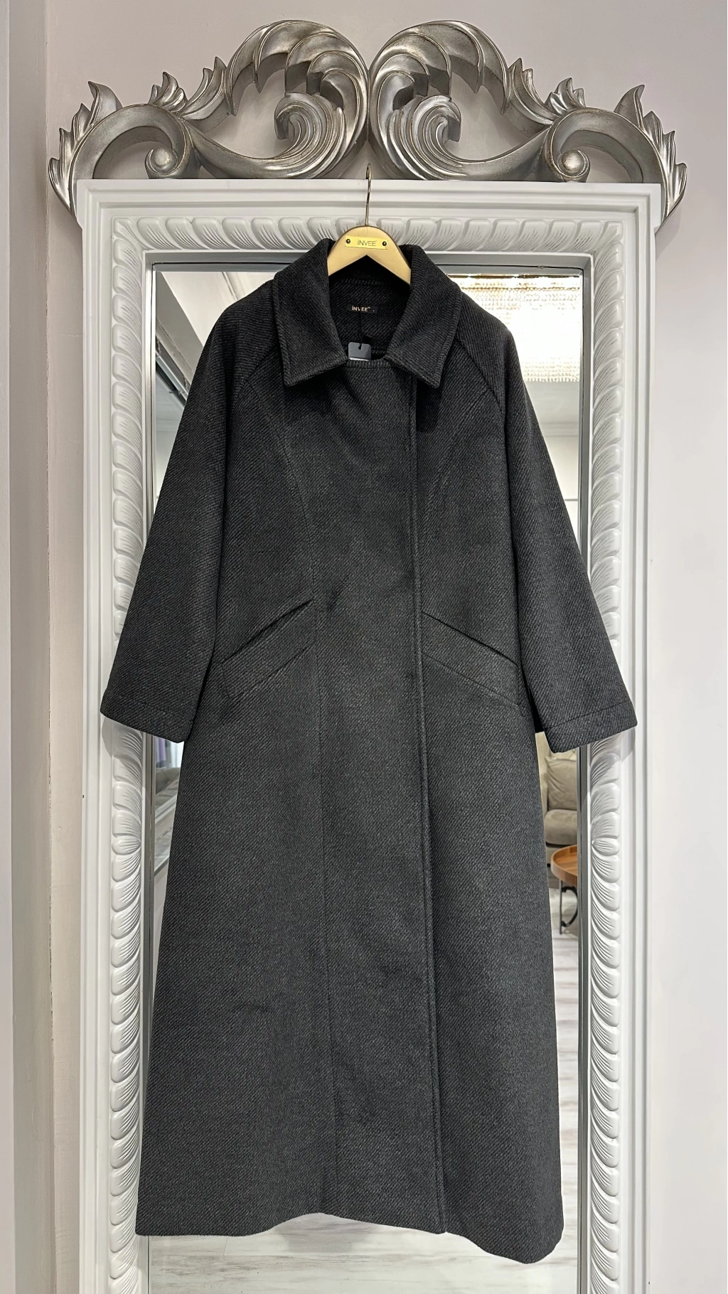 Yüksek kaliteli kumaş yapısı sayesinde sıcak tutarken, hafif formu ile konforlu bir kullanım sunar. Geniş yakası, kabanın klasik siluetine güçlü bir duruş kazandırırken, gizli ön kapama detayı modern bir sadelik yaratır. Yan cep tasarımı, hem fonksiyonel hem de estetik bir detay olarak dikkat çeker.