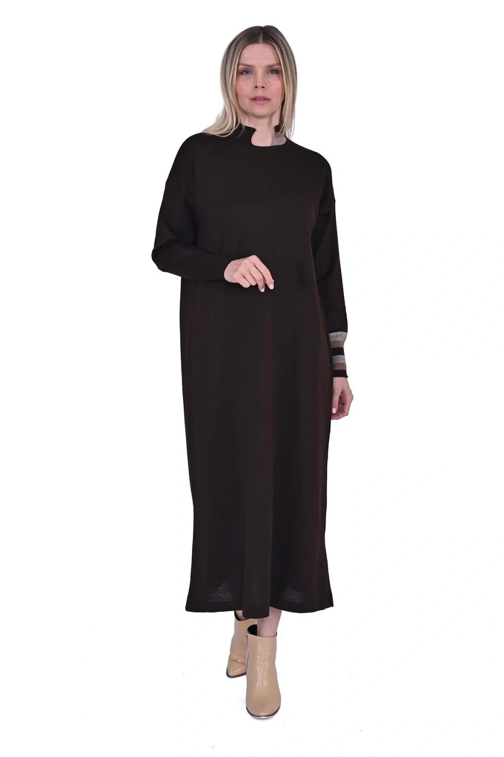 İnvee Yün Karışımlı Triko Elbise - Kahve
