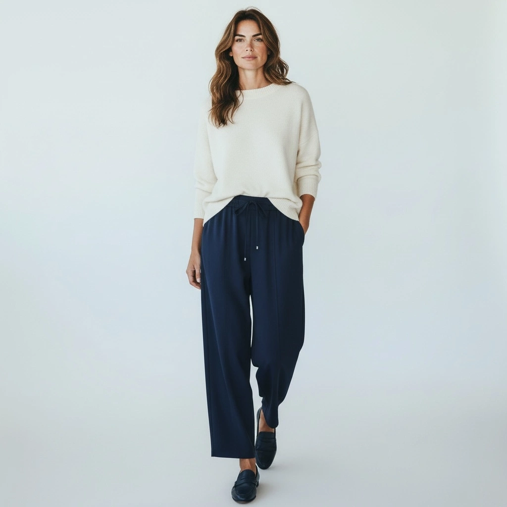 Geniş paça kesim: Modern, ferah ve zarif silüet.