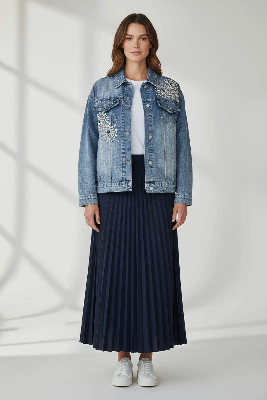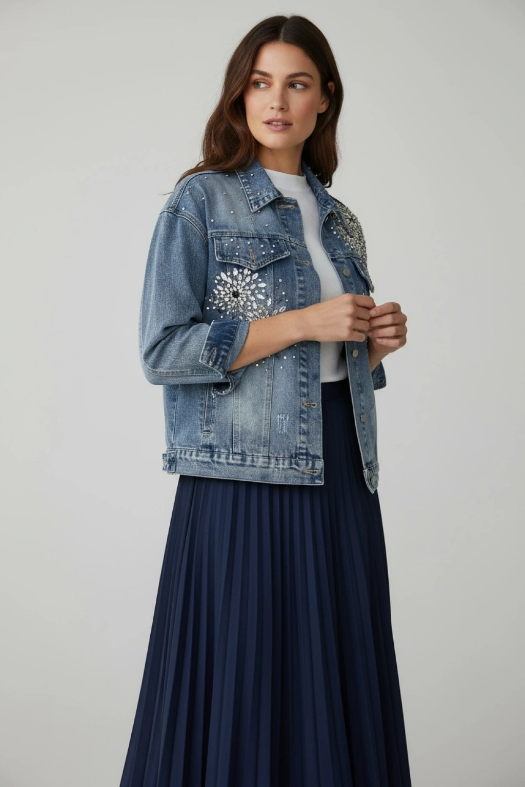 Taş İşlemeli Denim Ceket